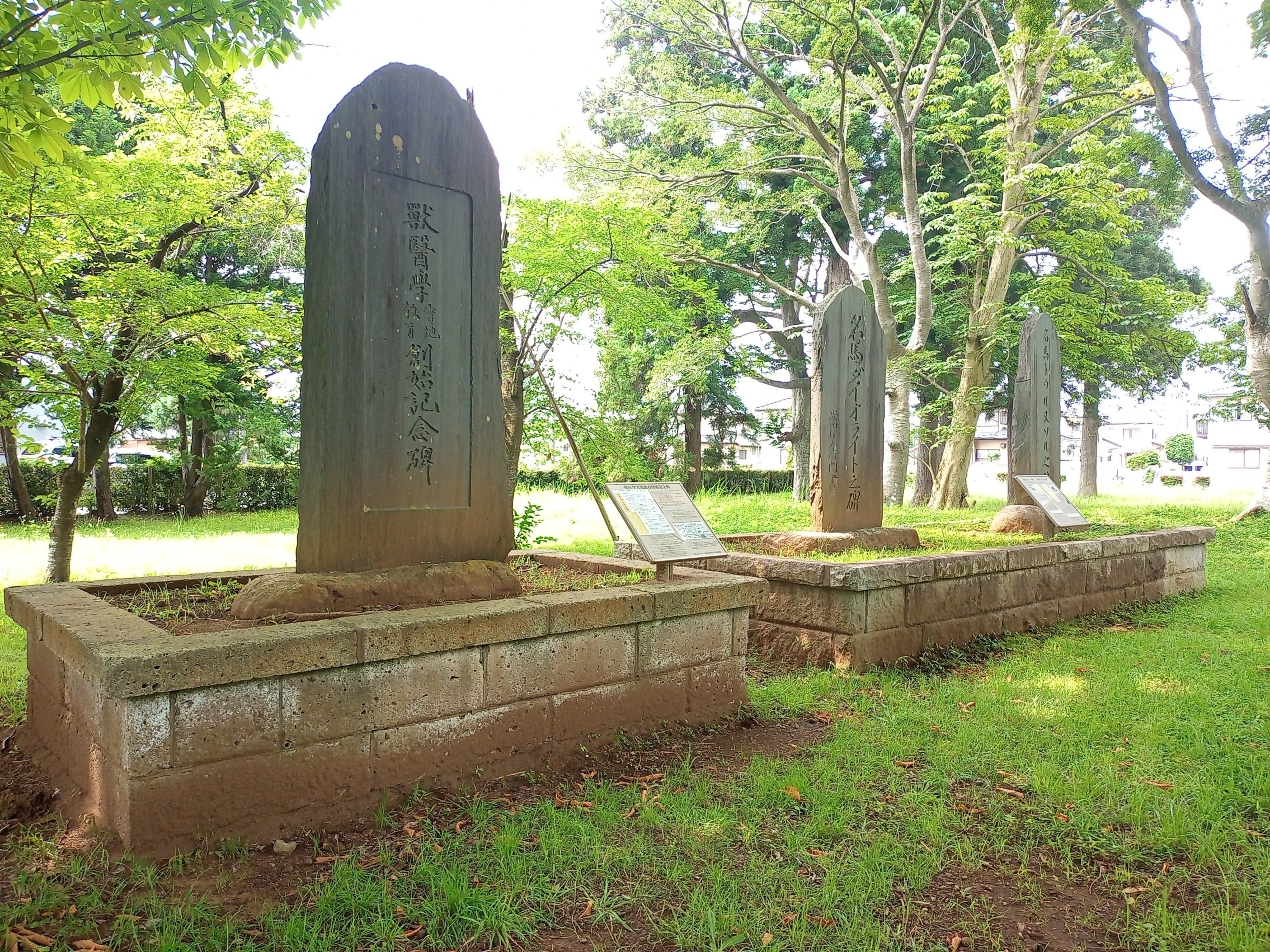 その他にも、戦中の金属供出で一時は姿を消しながらも再建された新山荘輔場長の銅像や、サラブレッド種牡馬と獣医学創始を称えた記念碑が同公園内に残るほか、三里塚第一公園内にある「馬見場」(明治天皇が一哩馬場での競馬をご覧になったとされる土堤)、芝山町の観音教寺に移設された「えい駿塚」と「吾妻号の碑」、栄町の龍角寺に移設された校倉造りの「穀物倉庫」といった、往時を偲ぶ牧場遺産が各地に遺されています。そうしたものを含めて、現存する下総御料牧場関連遺産を大切に守っていくべく、まずは多くの方々に牧場の歴史を知っていただこうというのが、今回のシンポジウムの目的です。