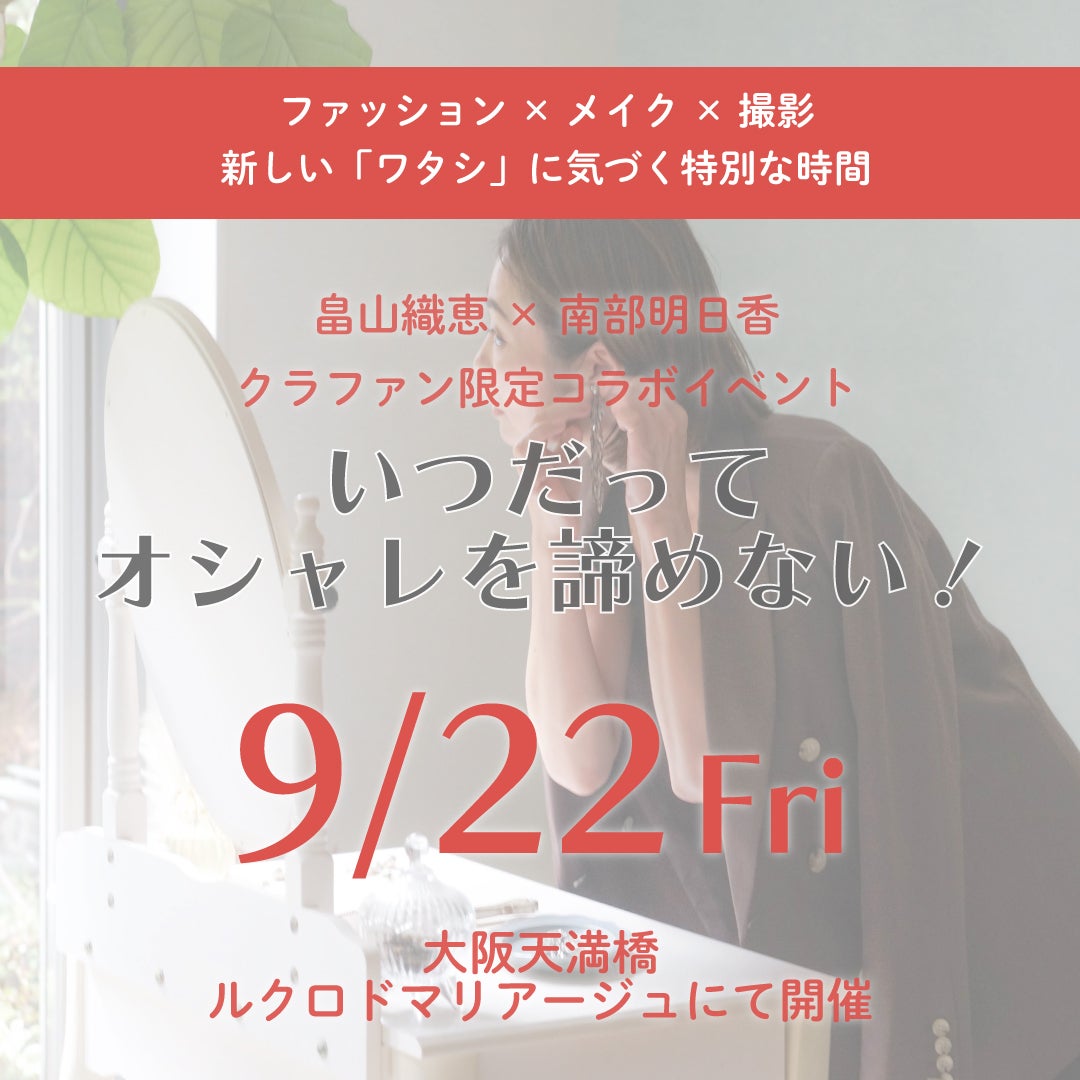 参加者全員にファッションアドバイス(畠山織恵)と簡単なメイクなおし(幸せ顔メイクアップアーティスト・南部明日香担当)をさせていただき、記念にお一人ずつの撮影をいたします。書籍は当日現地でのお渡しとなります。