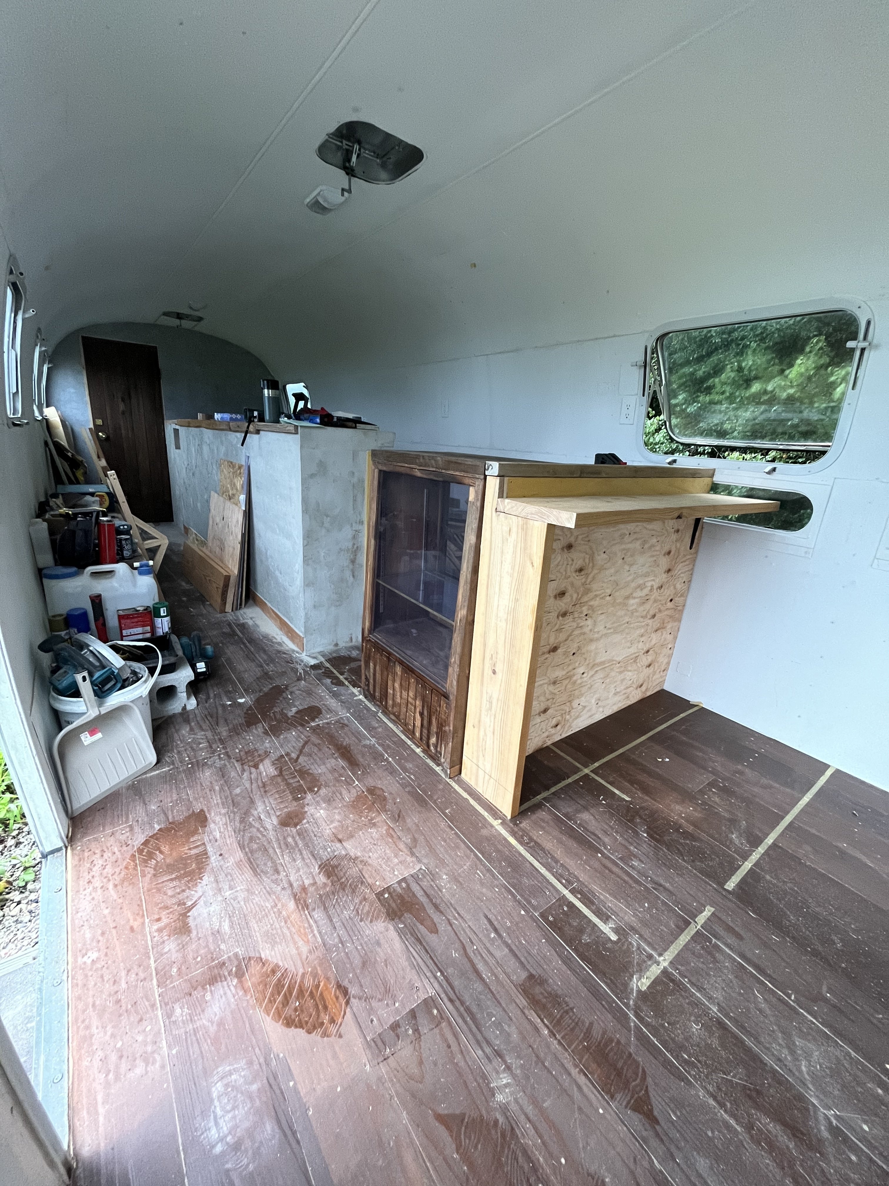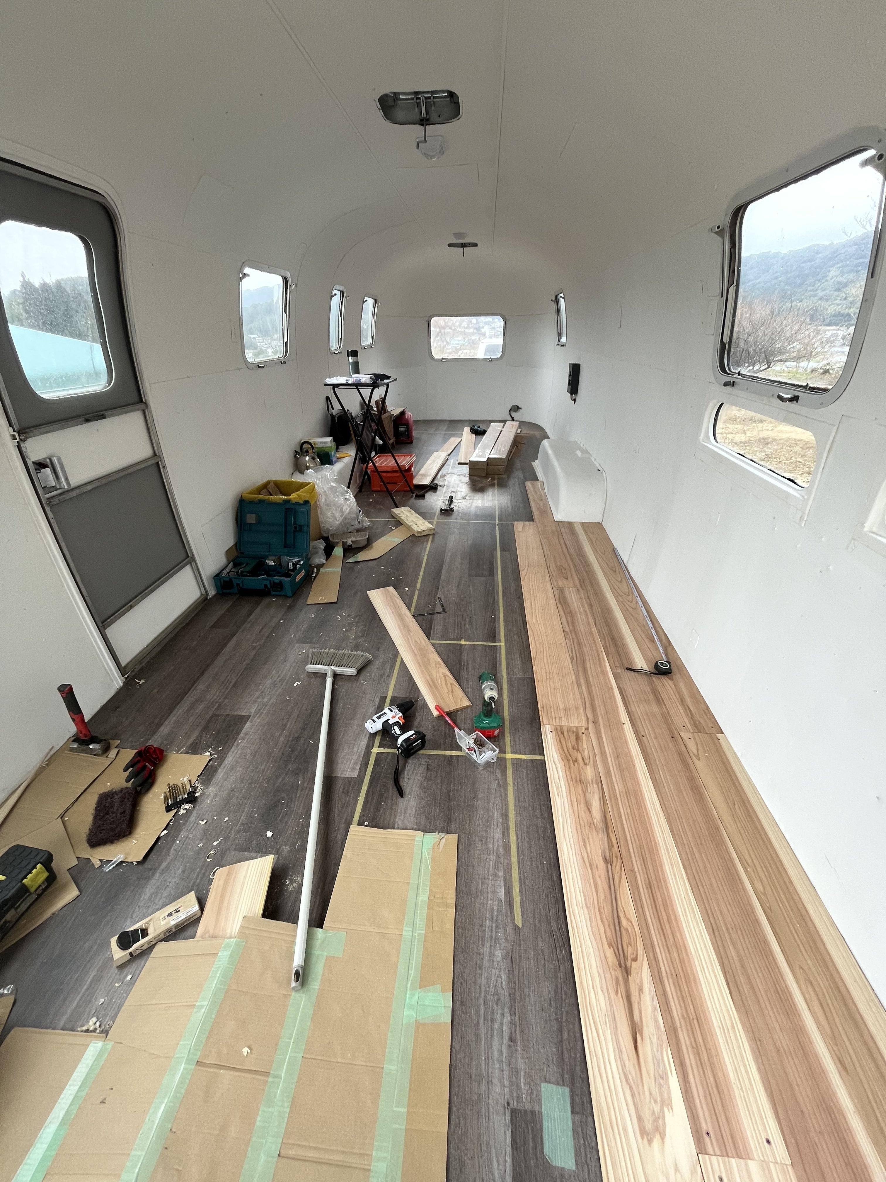 壁、カウンターテーブルなどの内装を 全て手作りで作業してます。