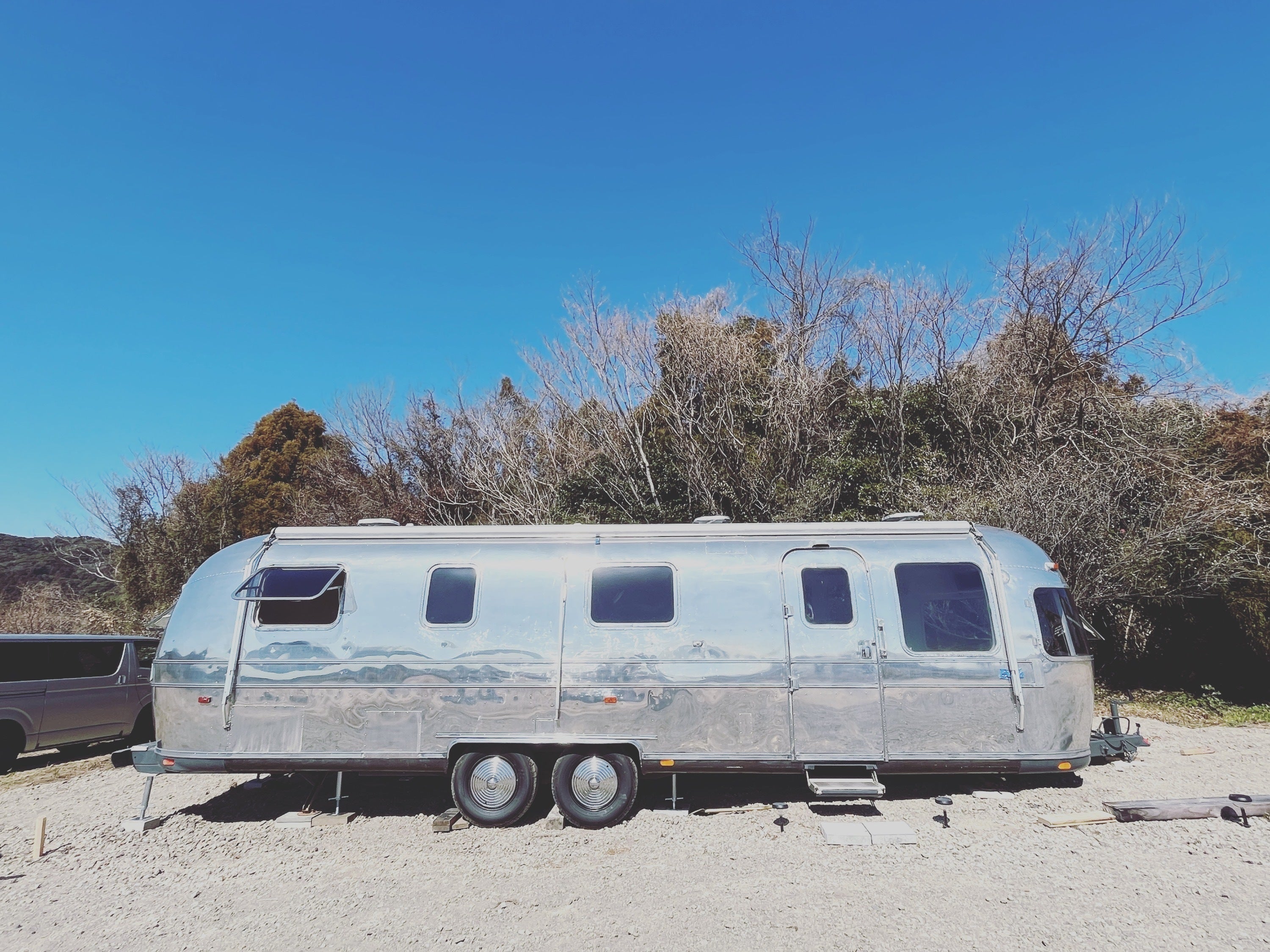 店舗はアメリカから引っ張ってきたトレーラーハウスairstream(エアストリーム)です。丘の上にある当店は景色がよく、日の出から日の入まで見ることができる開放した場所です。静かでとても気持ちの良い立地です。