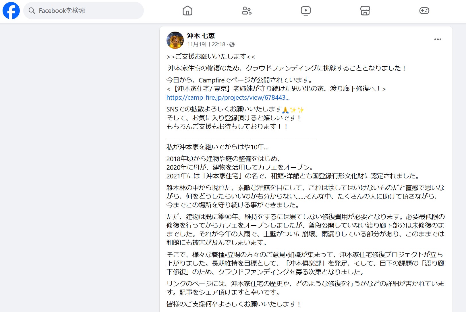沖本家住宅のクラウドファンディングのことを拡散していただきたいのです。