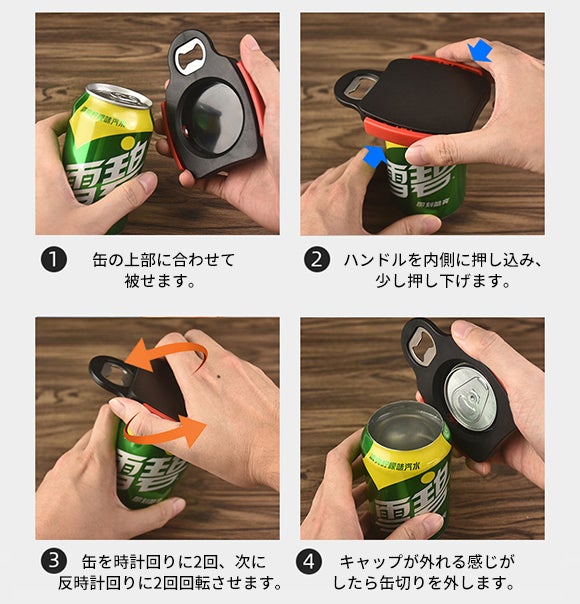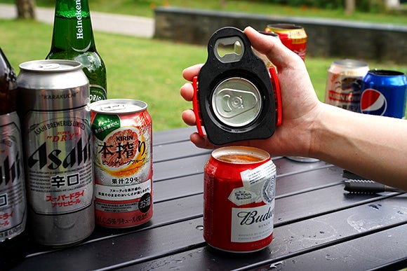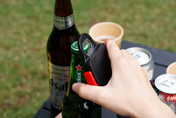 ●缶オープナーと瓶ビールの栓抜き機能を1つに、持ち運びに便利。