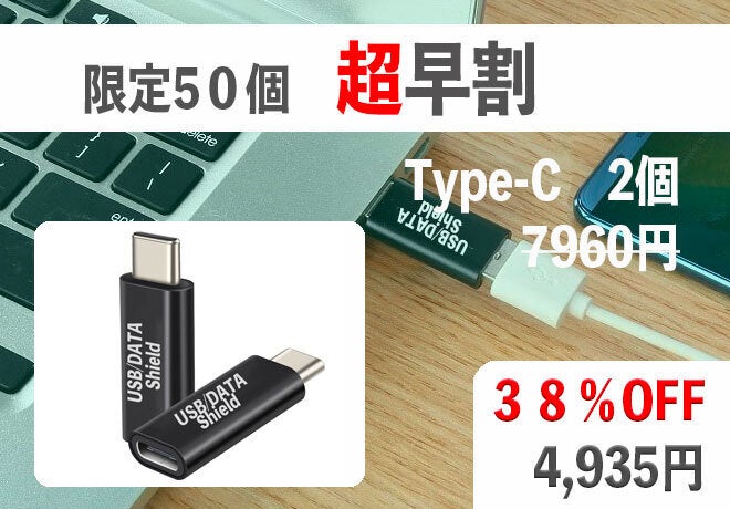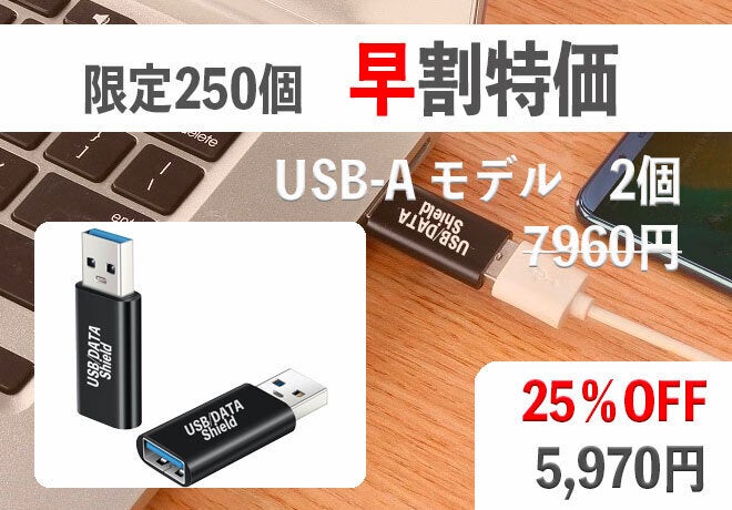 iPhoneやAndroidスマホなどの写真や個人情報の流出を防ぎます「USBデータシールド」で急速充電と物理防御