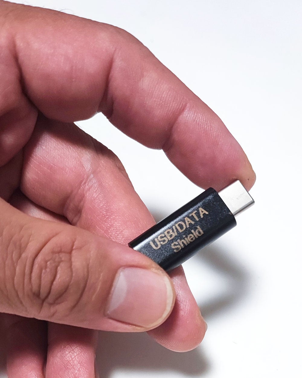 「USBデータシールド」を使用すると、公共の充電スタンドのケーブルを通る物理的なデータラインは、ハッカーがあなたのスマホのデータにアクセスできないようにします。