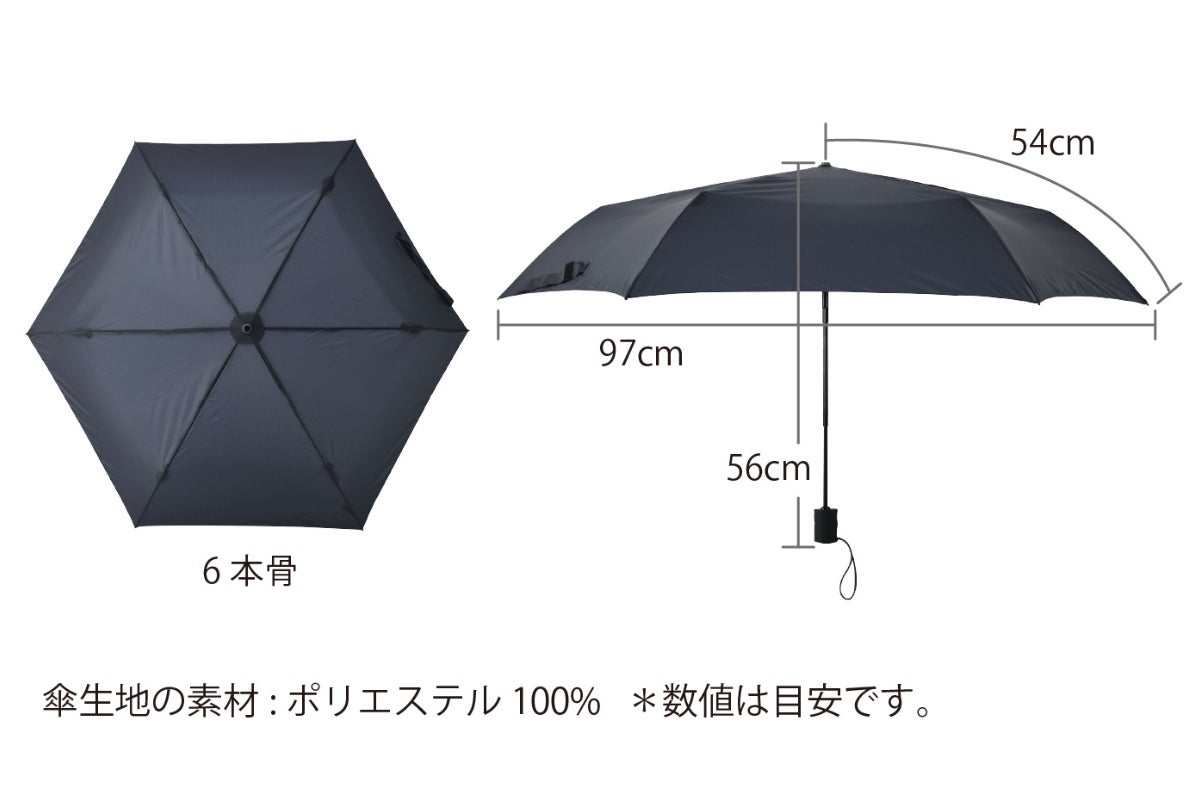 折りたたみ傘としては十分な54cmサイズ。
