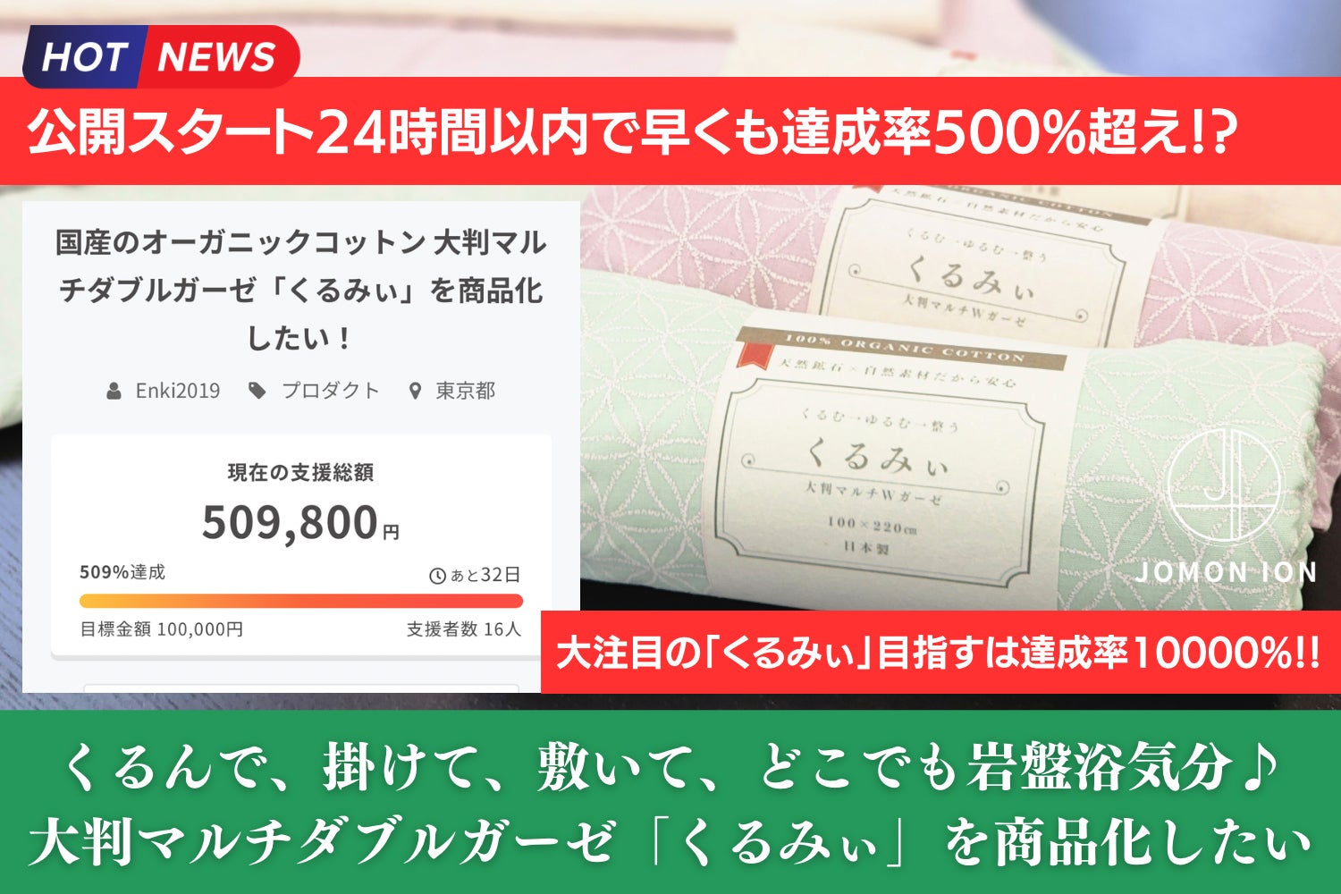 国産のオーガニックコットン 大判マルチダブルガーゼ「くるみぃ」を商品化したい!
