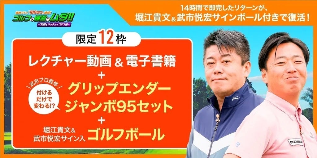 堀江貴文×武市悦宏プロのサインボール付きリターンであったり、実際にオフラインで武市プロにレッスンしていただけるというリターンもあります!