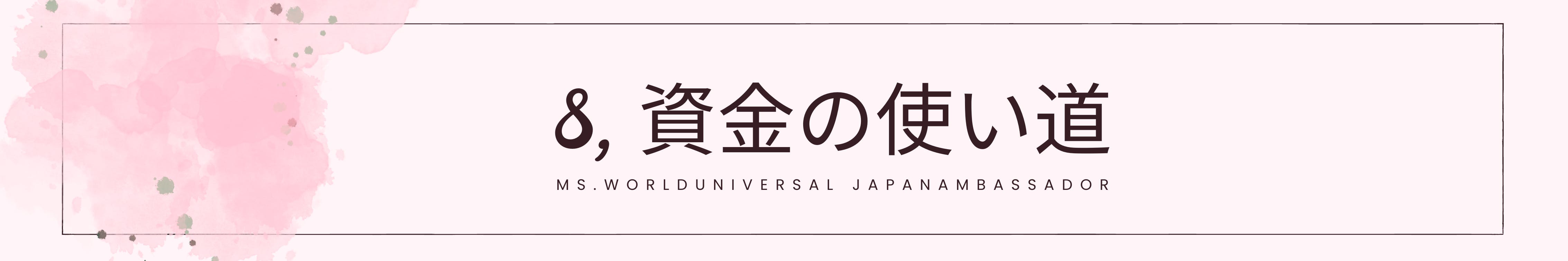 世界大会出場のための渡航費、参加費、ヘアメイク費用、通訳謝礼、衣装費、英会話レッスン費用、クラウドファンディング手数料、作品制作費などの補填。