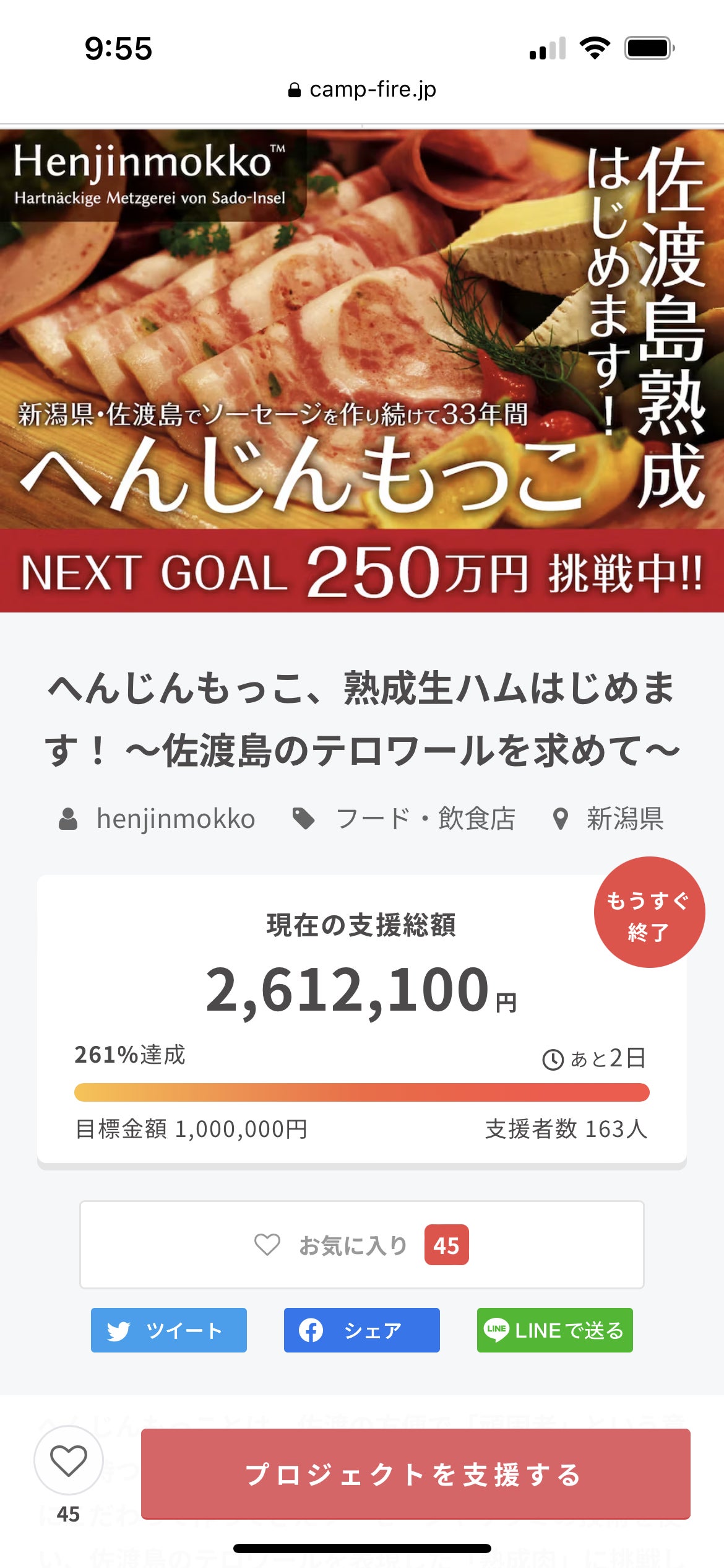また、佐渡熟成生ハムにご興味を持たれたかたは、是非ご支援よろしくお願いします。