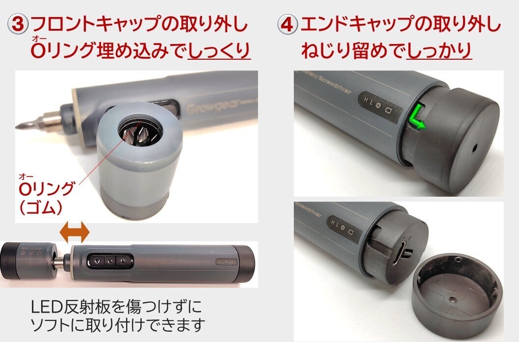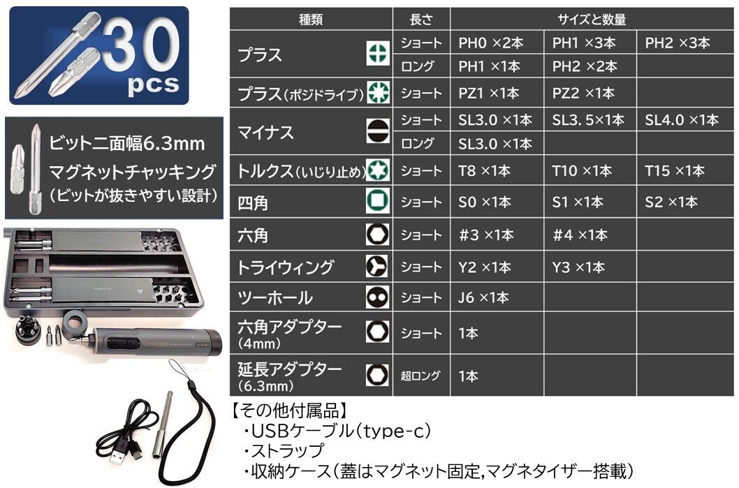 ビットがネジに食い込んだりした時には、本体からビットが抜ける場合があることをご了承ください。