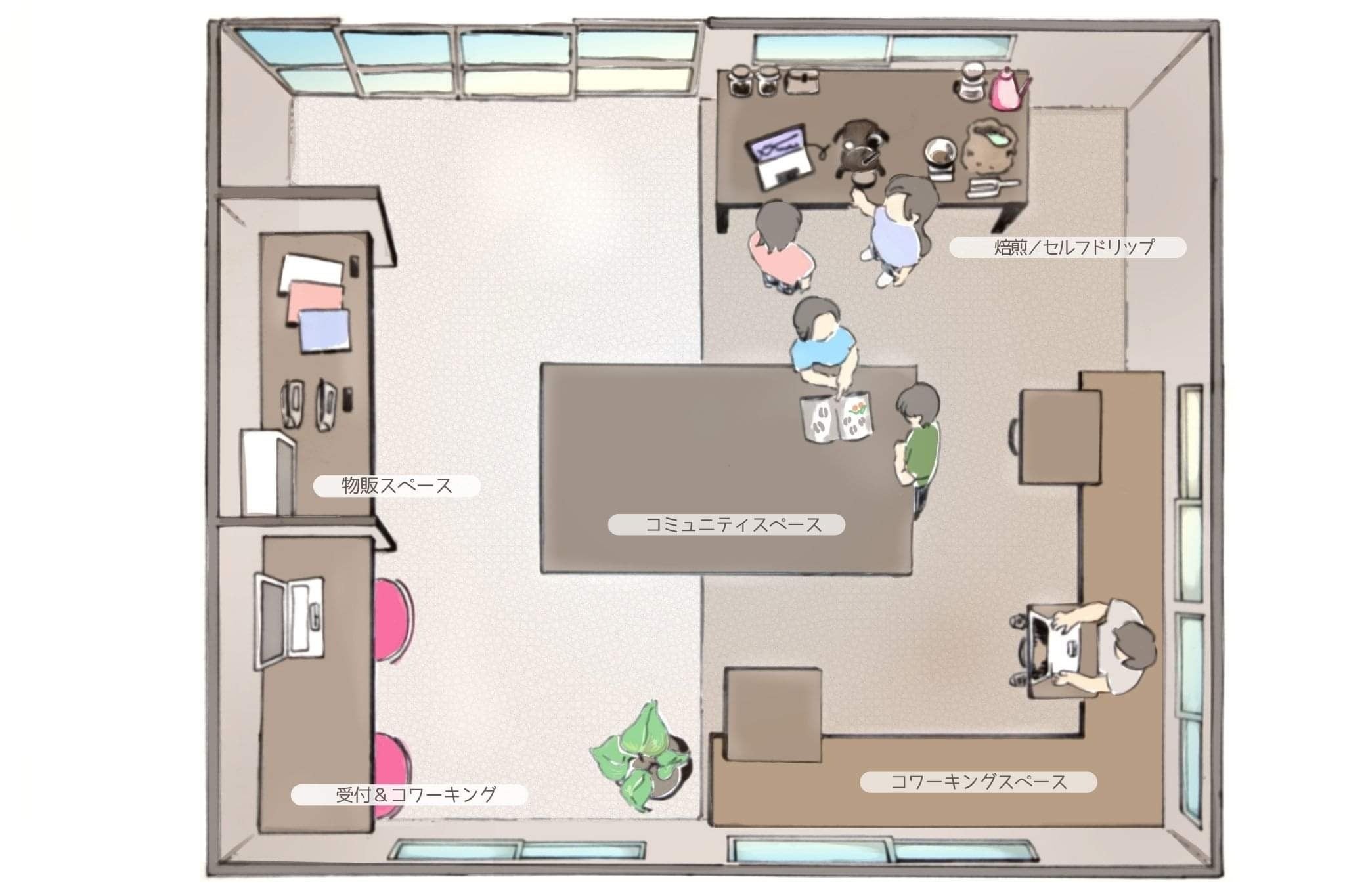 コミュニティとしての運営イメージ。焙煎だけでなく、たくさんの人が集まれる場所にしたい。