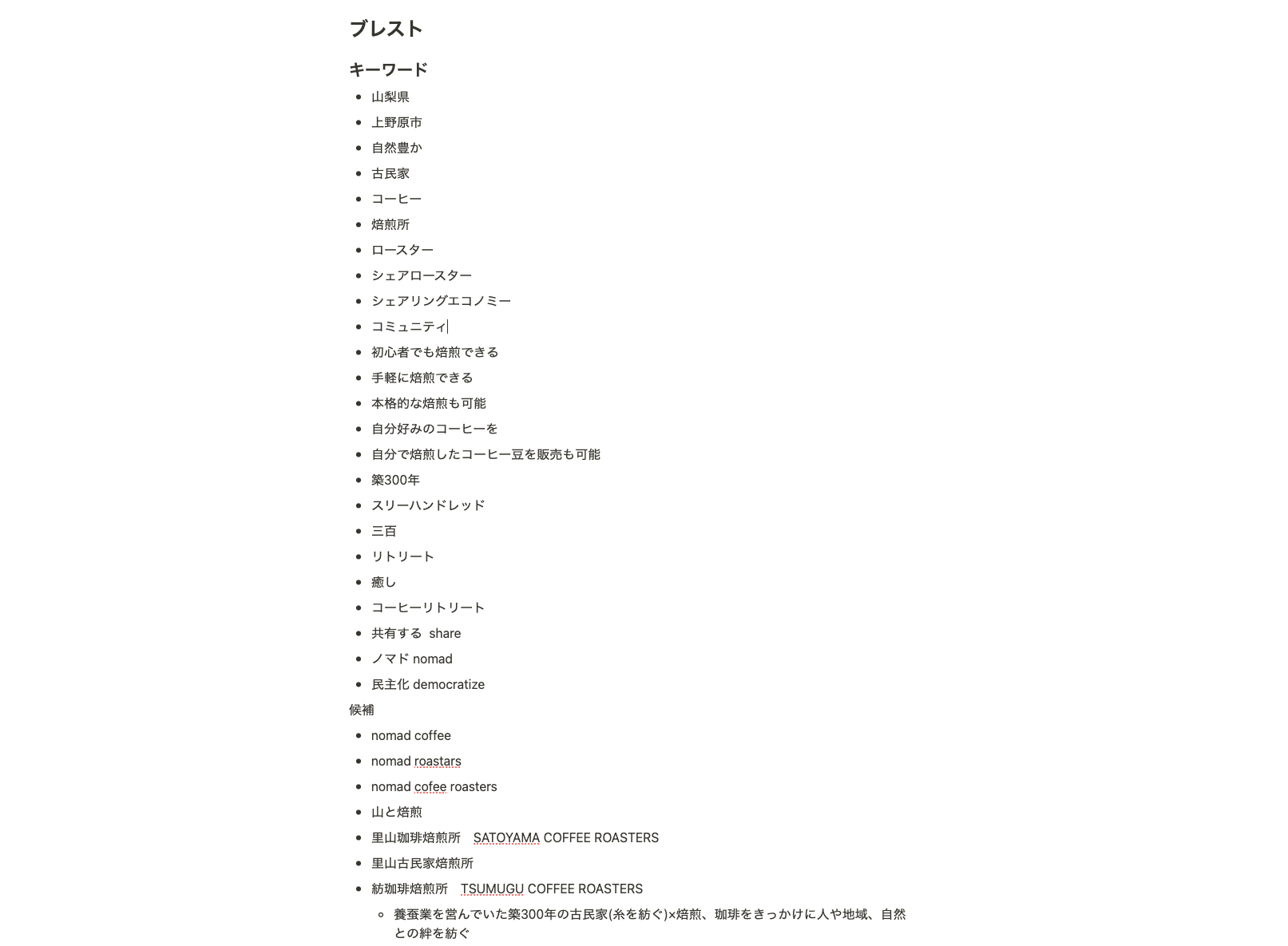 上野原の里山っぽさで里山珈琲焙煎所とか、その他にも色々なアイデアがありました。