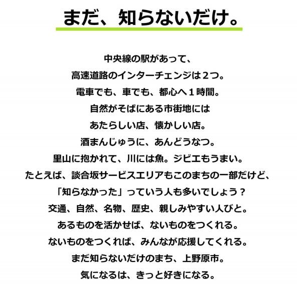2023年5月に更新された上野原市のブランドメッセージ