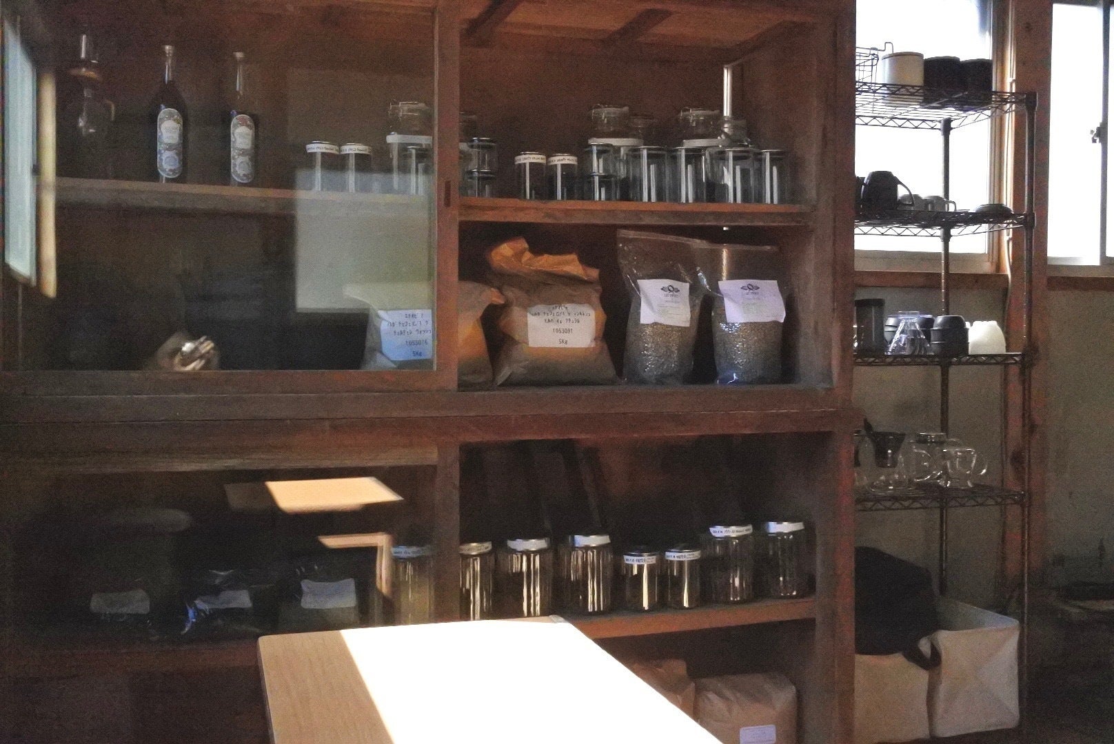 温かみのある古材とともに珈琲器具もなるべく新しいものを取り入れるようにしています。