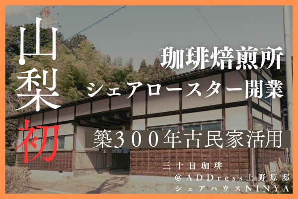 住まいのサブスクサービス「ADDress」の人気拠点、上野原A邸の空きスペースに山梨県下で「初」となるシェアロースター(みんなで使える珈琲焙煎所)を開業します。
