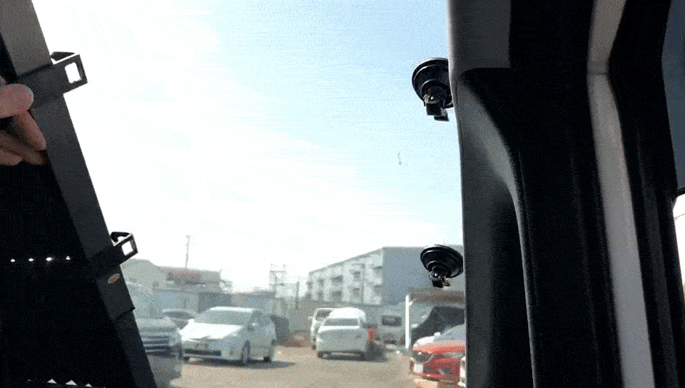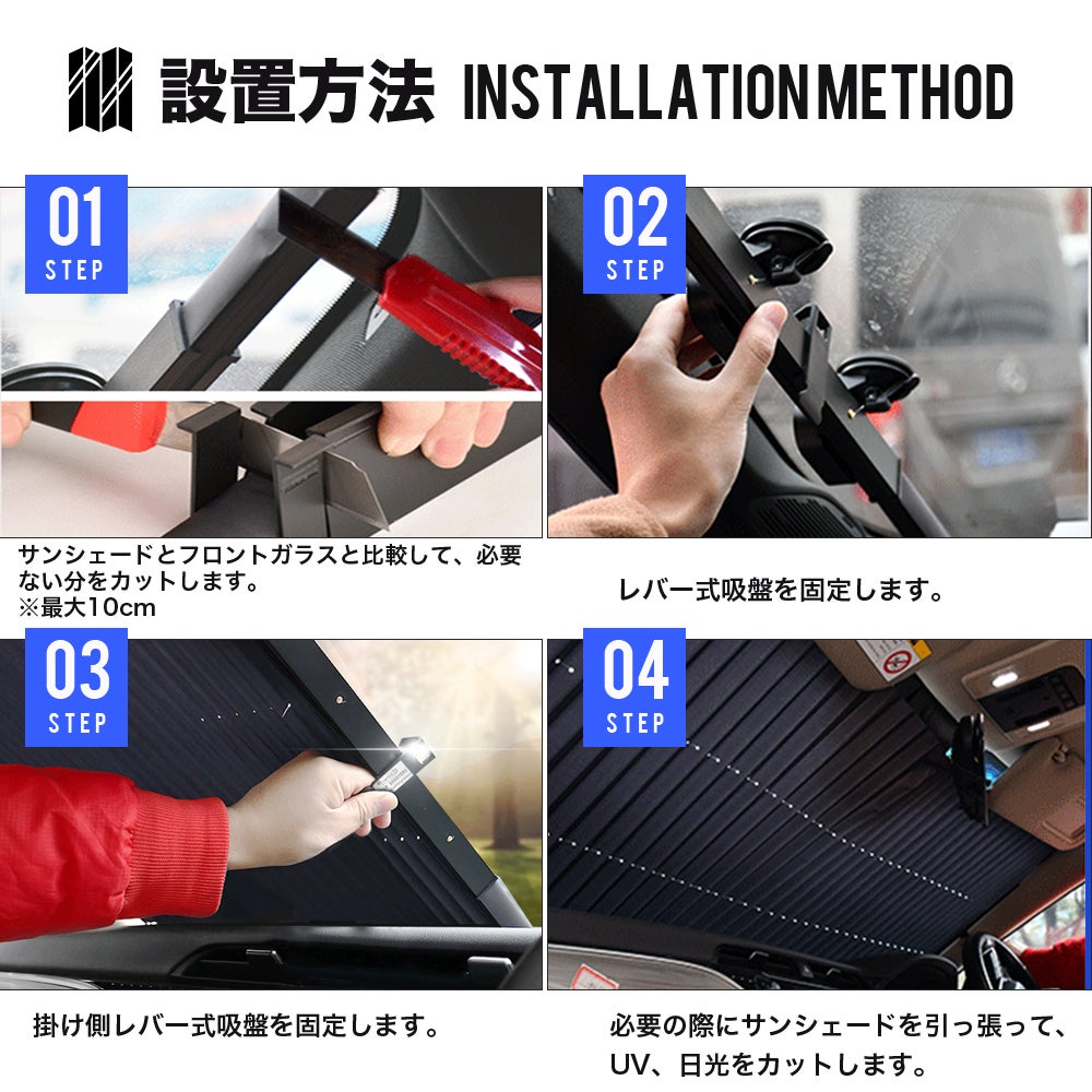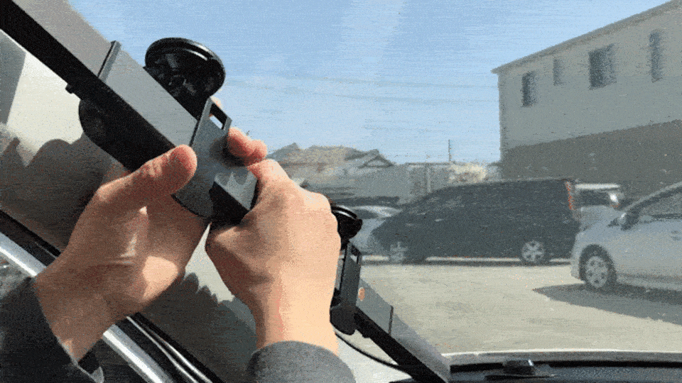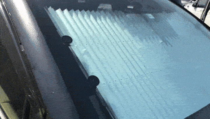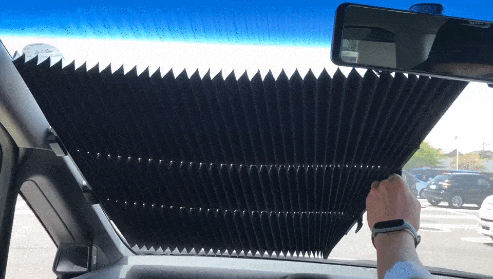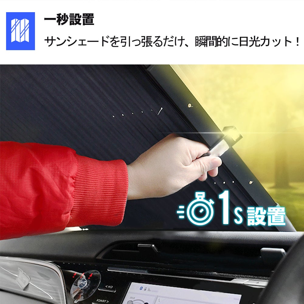 サンシェードを引っ張って、吸盤にかけるだけ、一秒設置完成!