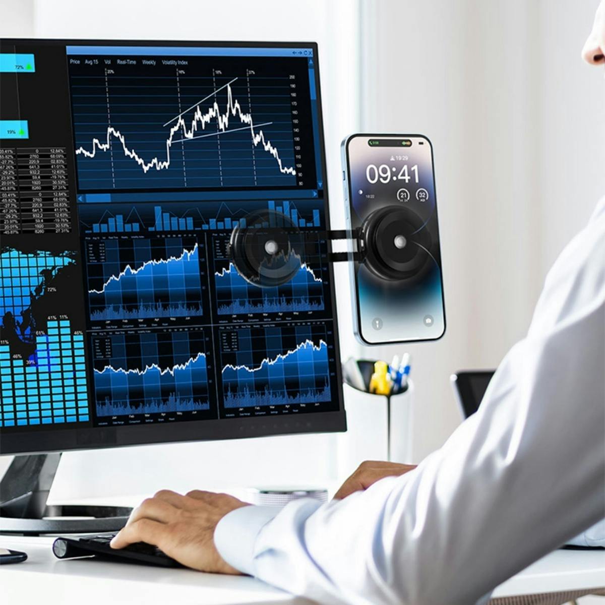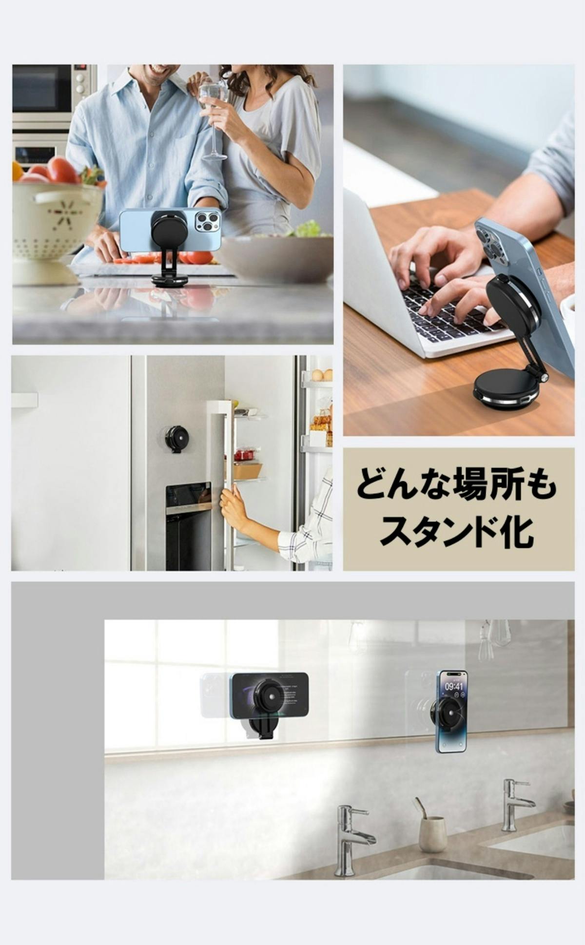 タブレットをスタンドに軽く押し付けるだけでピタッと真空吸着し、360度回転でき、あなたの好みの高さと角度でスマホをモニターとして使用できます!