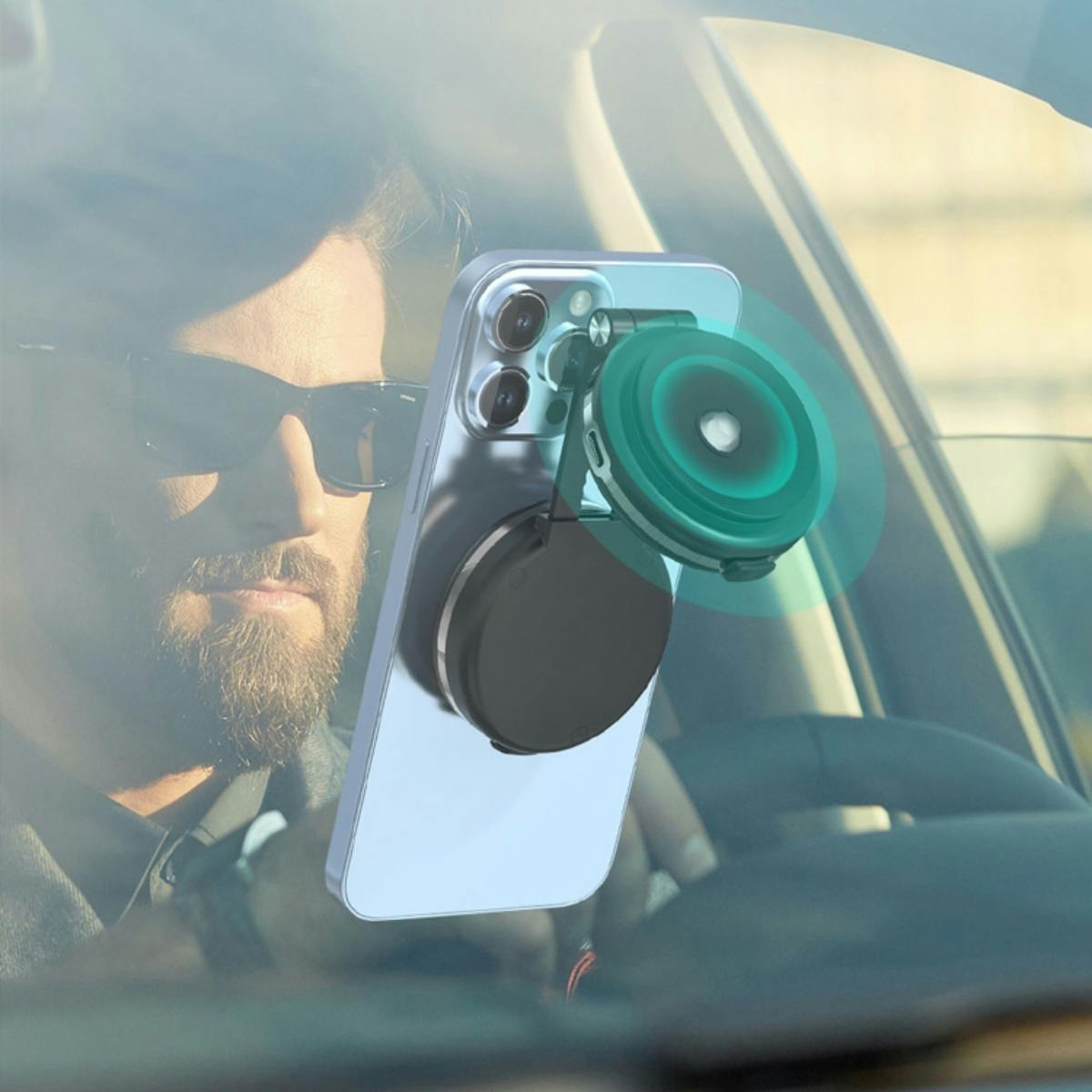 モーターの力により吸盤の中が真空状態になることでスマホホルダーとしてお使いいただけます!