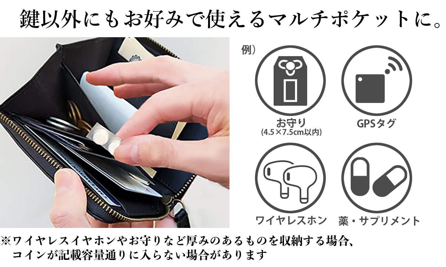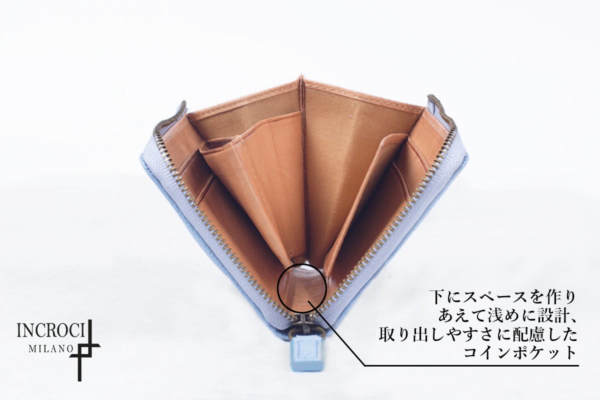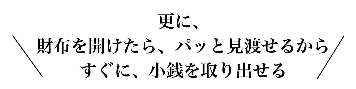 コインポケットを真ん中に配置することで、左右に収納スペースを作成。