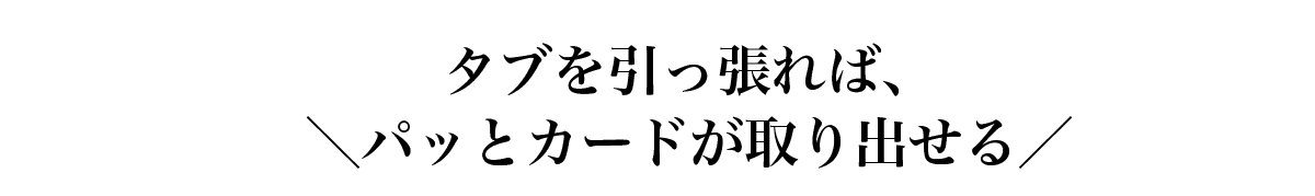外側のカードポケットにカードをしまう際、タブを中に戻してからカードを入れていただくとスムーズにご使用いただけます。