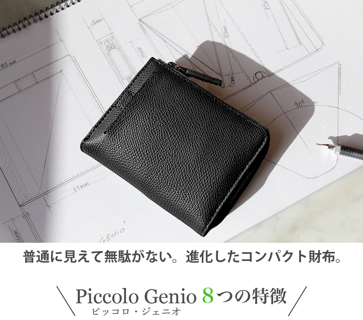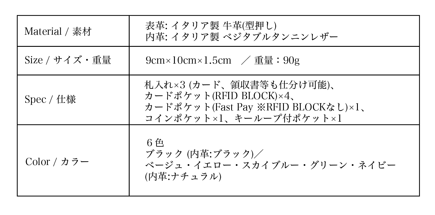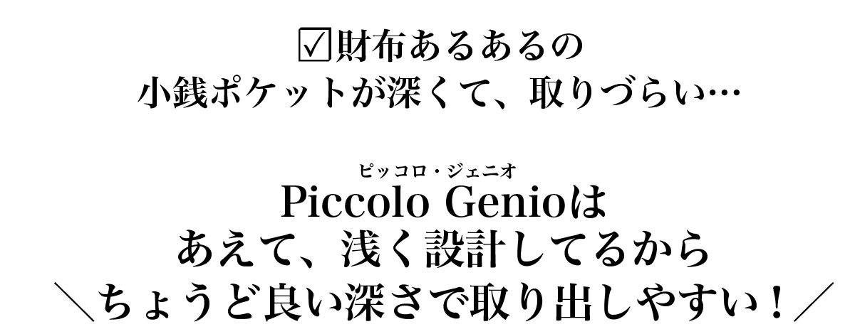 ・財布piccolo genio×1個、レザークリップ×1個※オリジナルBOXに入れて、お届けいたします。