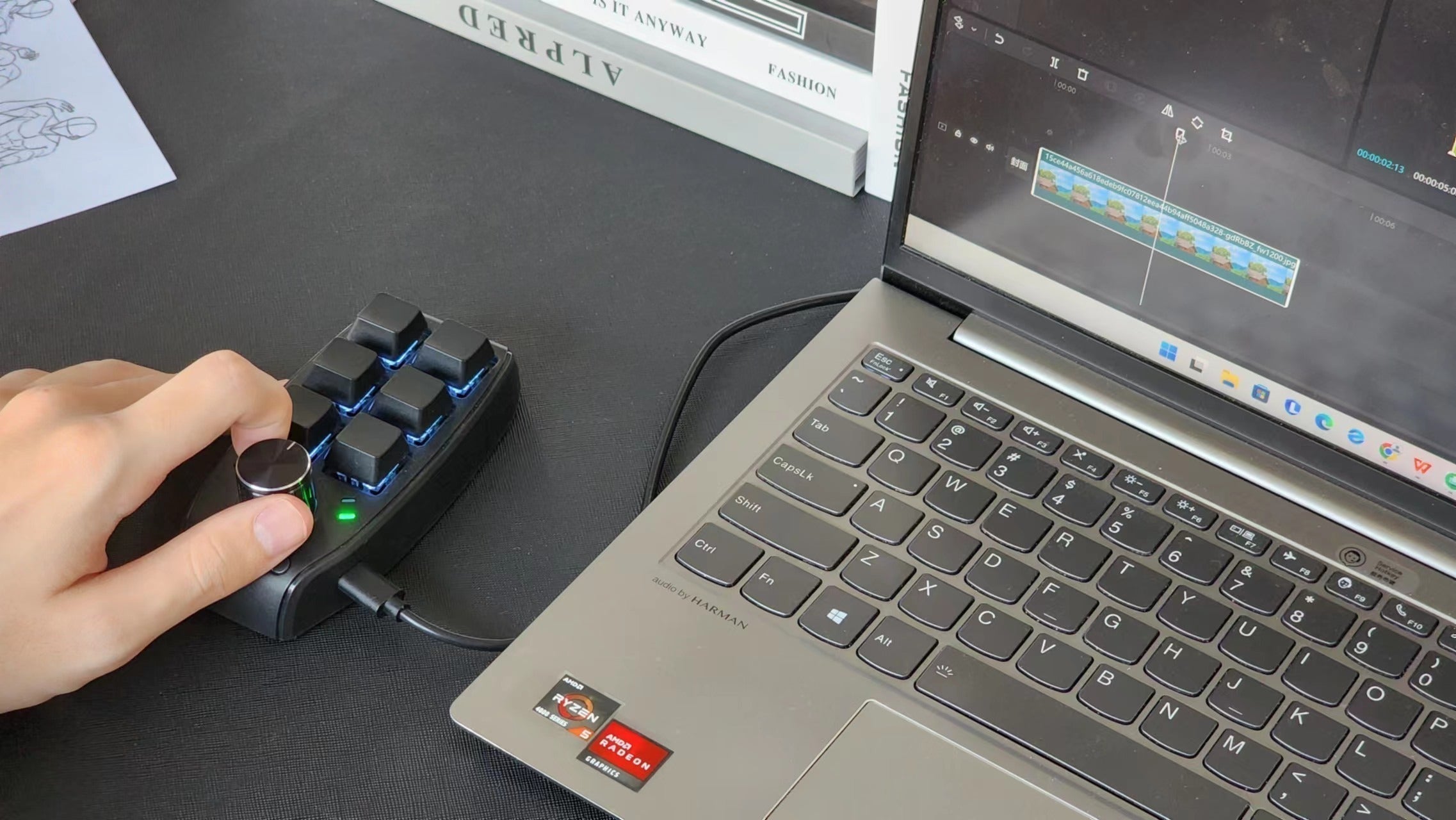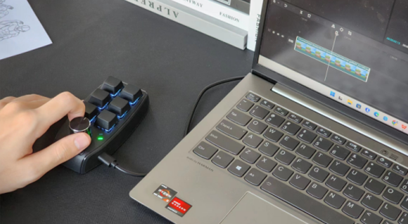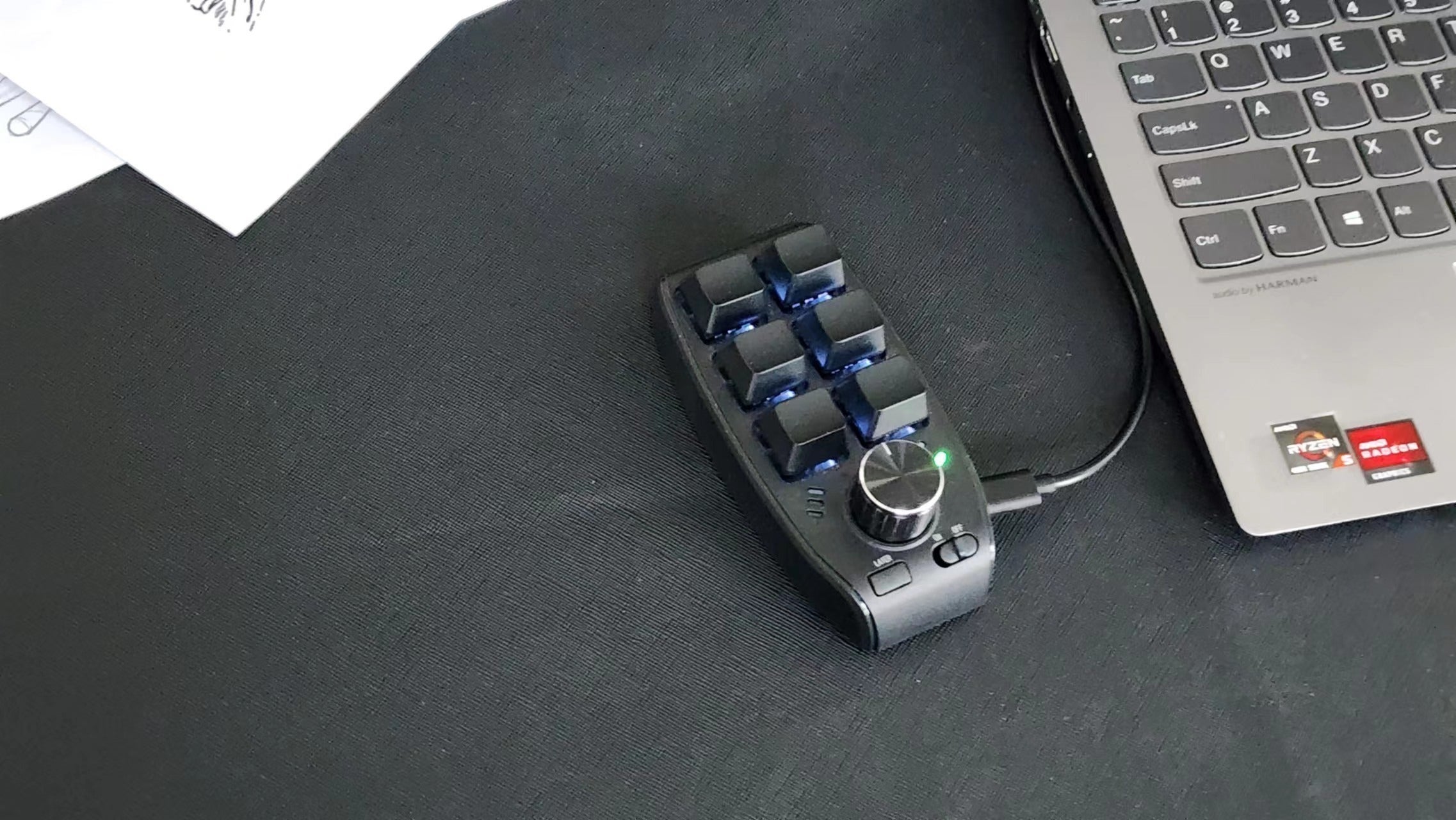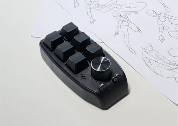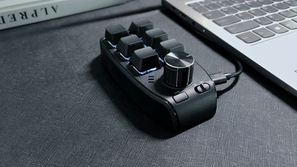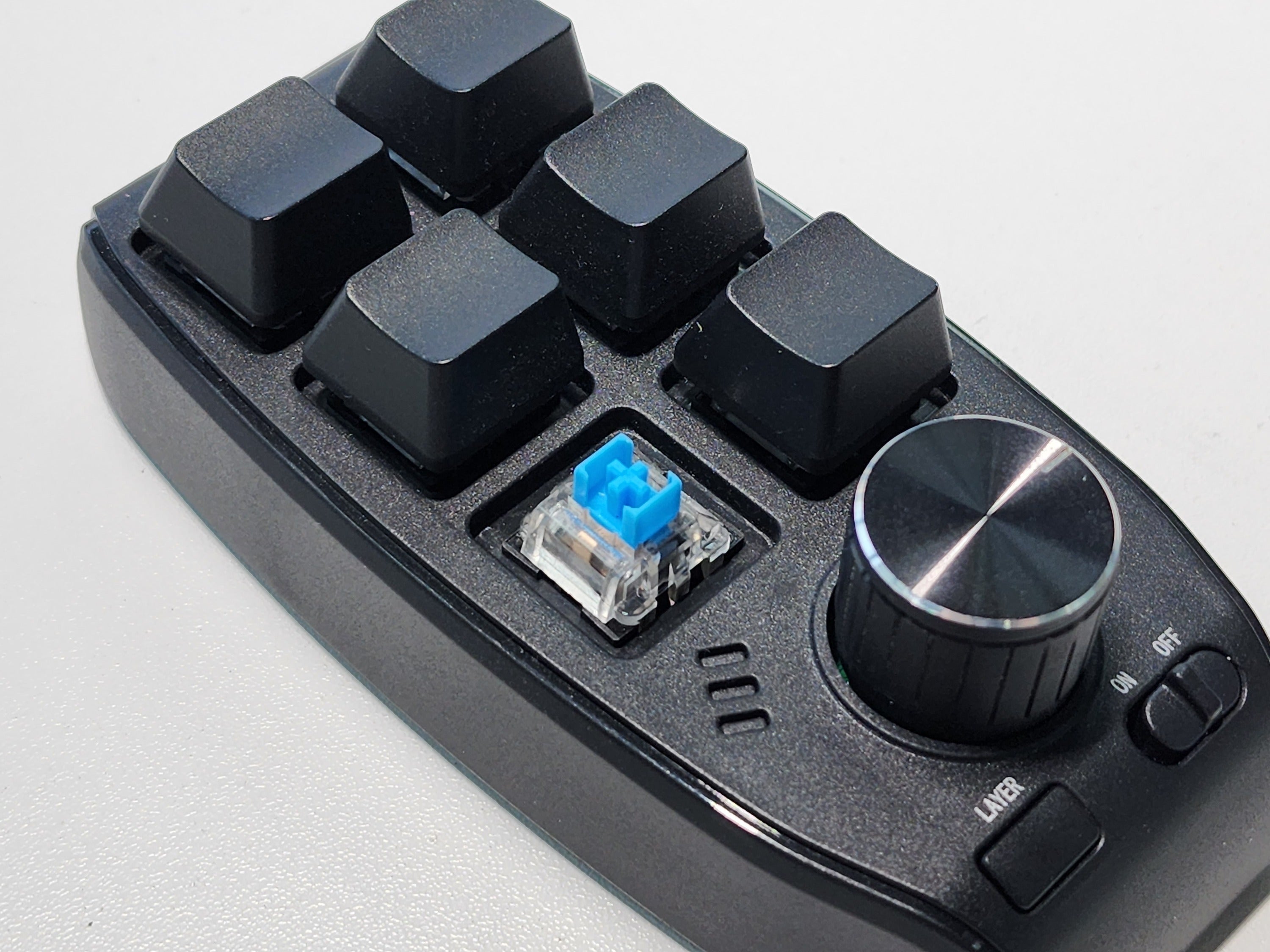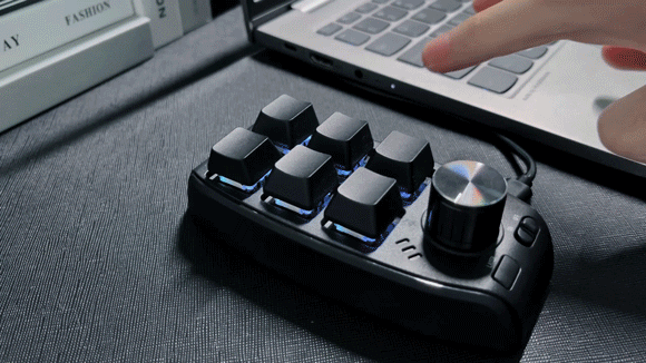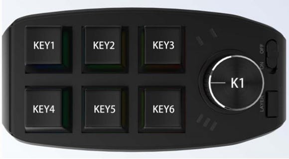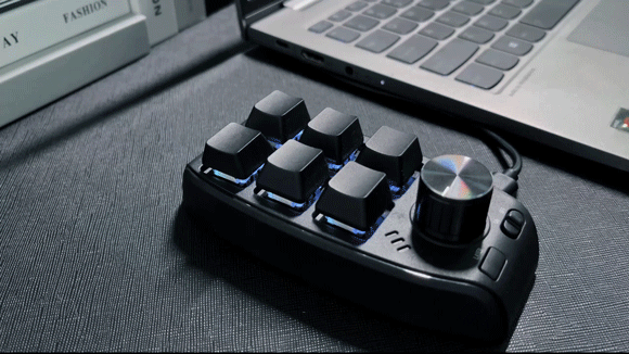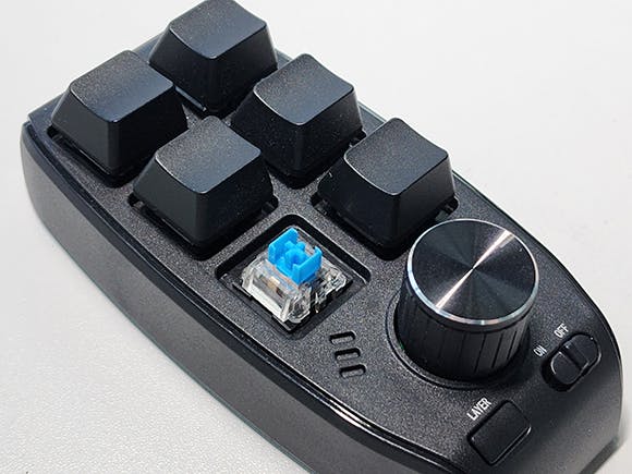 「Mini cukey」は6つのキーとノブを備えており、ノブの右回り、左回り、押し方をすべてカスタマイズできます。さらに3つのレイヤーを設定でき、合計27個のカスタムキーがサポートされています。