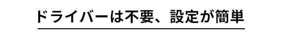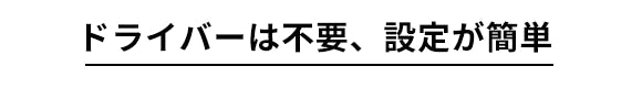 専用ドライバーをインストールする必要が無く、付属ケーブルを接続し、ソフトウェアをインストールするだけですぐに使用可能です。