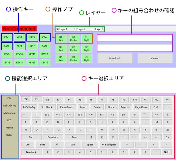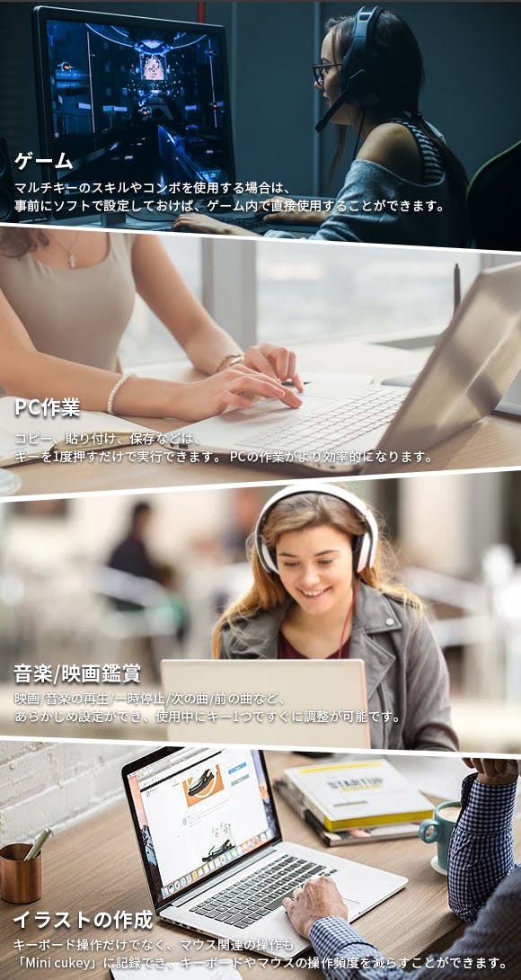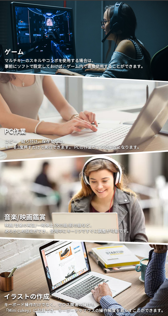 パソコンで各ボタンの設定を行った後、デバイスに接続して直接使用することができます。