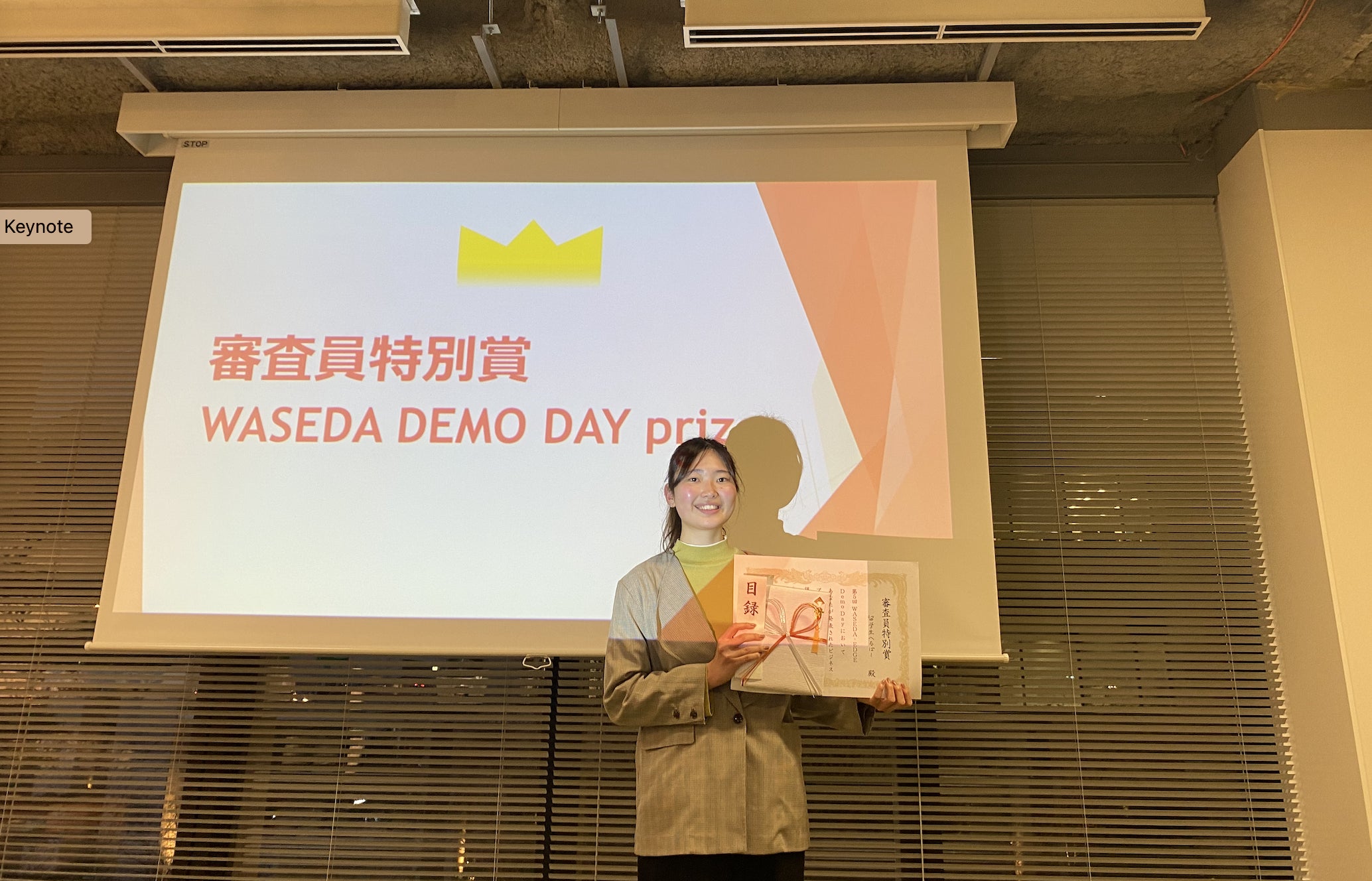 今年の2月末に早稲田大学主催のビジネスコンテストWASEDA DEMODAYに優勝することができました。