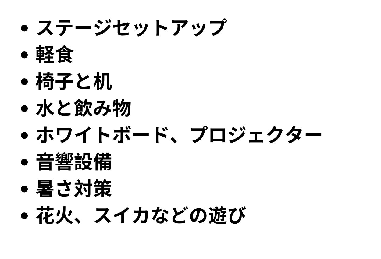 普通のビジコンであれば絶対に必要のないものも、ビーチでビジコンをするとなると、必要になってくるものが多いです(笑)