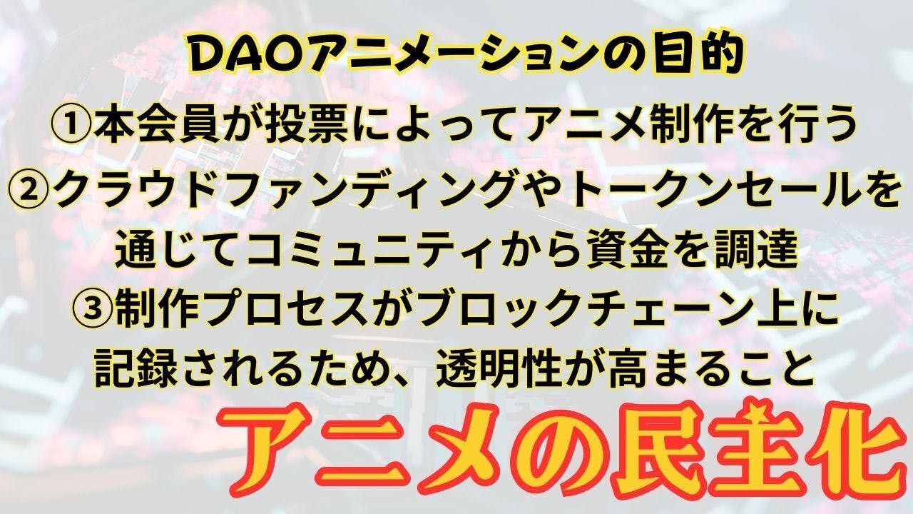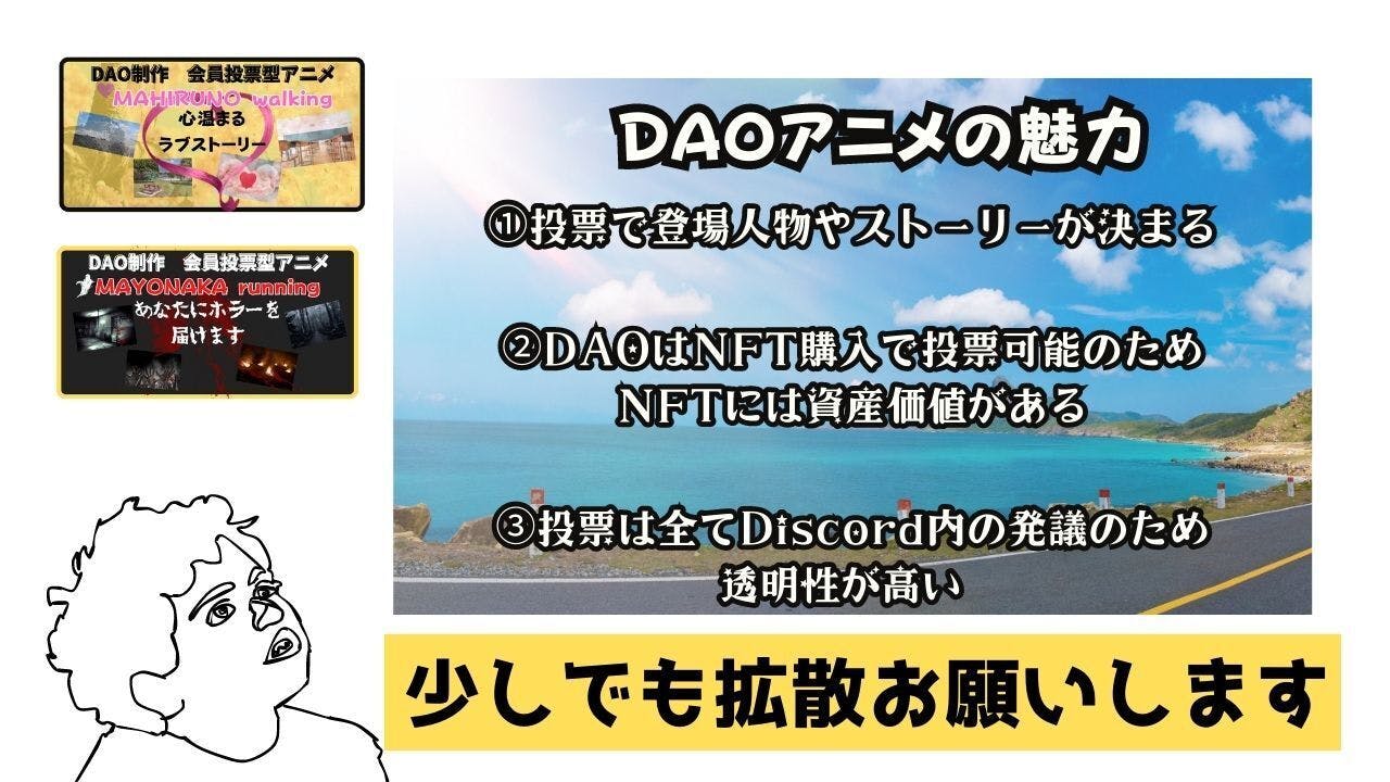 どうかDAOアニメーションの実現に向けご理解いただけますようよろしくお願いします。