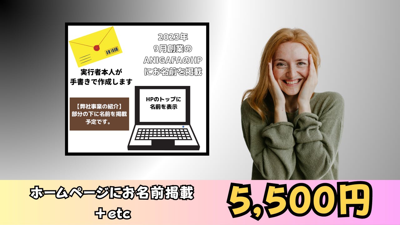 ホームページにお名前掲載+手書きのメッセージ 5,500円
