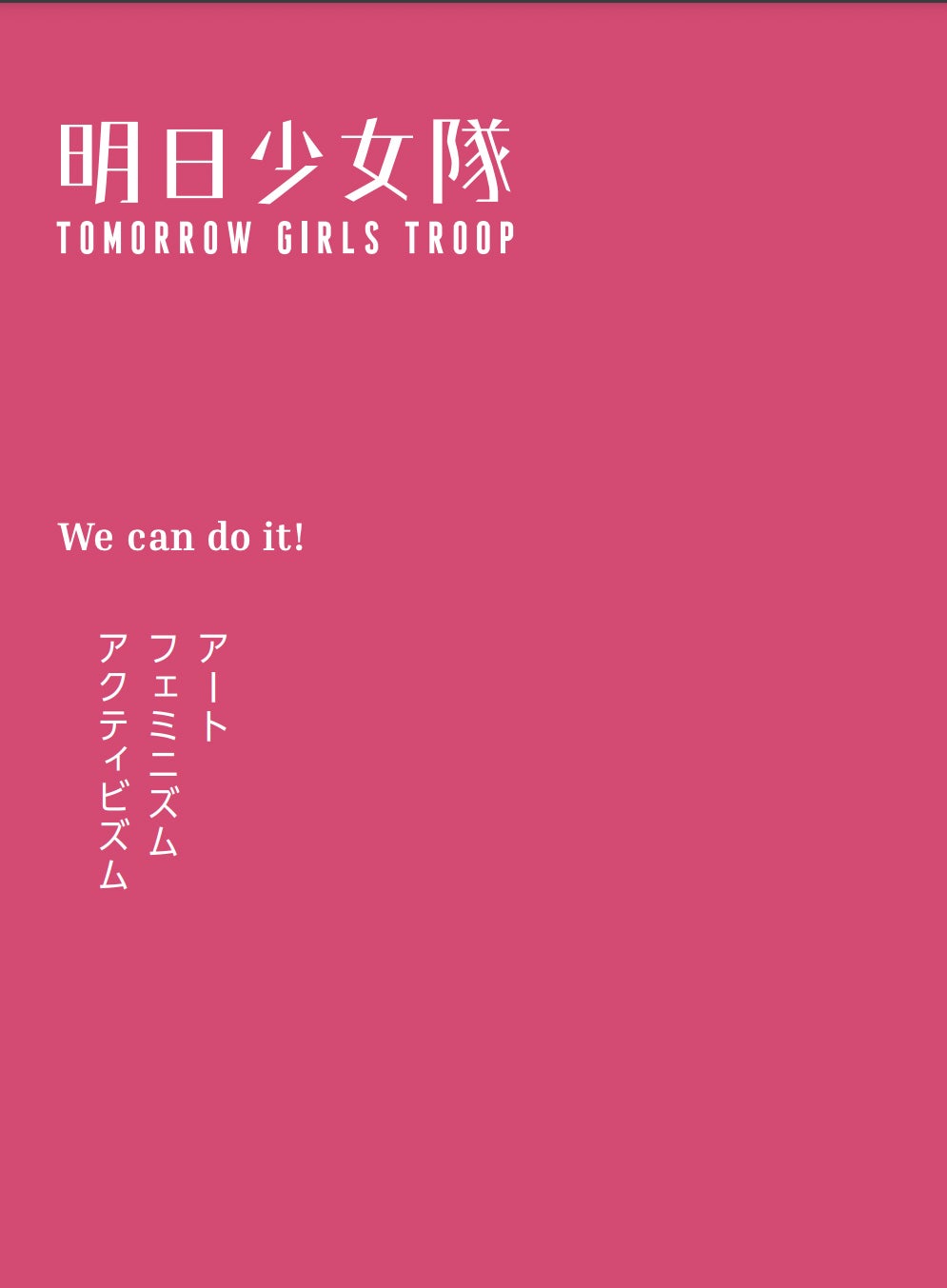 2015年に発足し、日本、そして東アジアのフェミニズムをアートを通して、グローバルに発信を続けてきたフェミニスト・アーティスト・グループの明日少女隊。