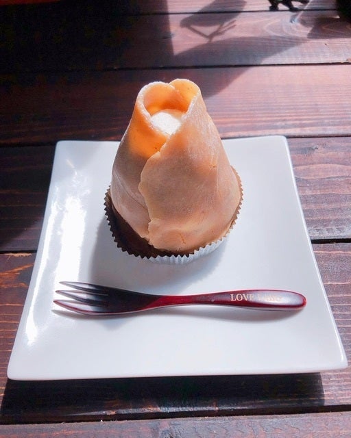 春は抹茶のモンブラン、『朝日岳のモンブラン』をお作りしています。地元那須町の稲作本店さんのパフライス『イナポン』がアクセントに。