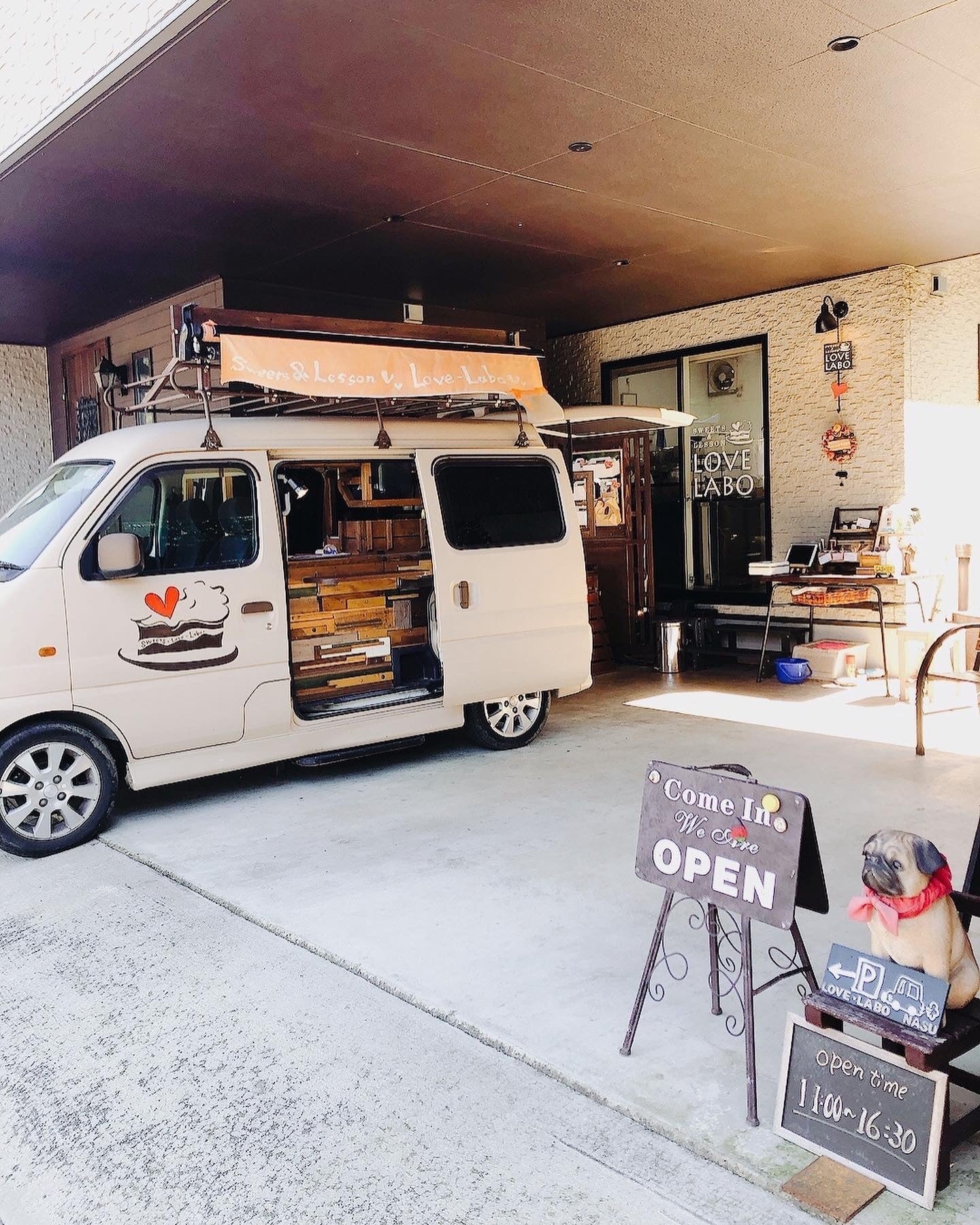 現在は自宅のガレージで土日月のみ販売しています♪火曜日は出店日としています。12:00-17:00。