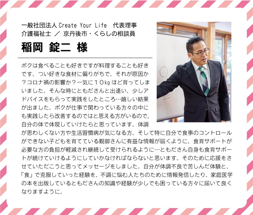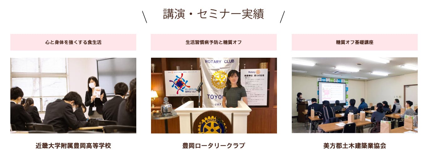 2017年より体質改善や生活習慣病予防をテーマに講演&セミナー活動をスタートさせるなど、健やかな食生活の実現を目指して活動中。