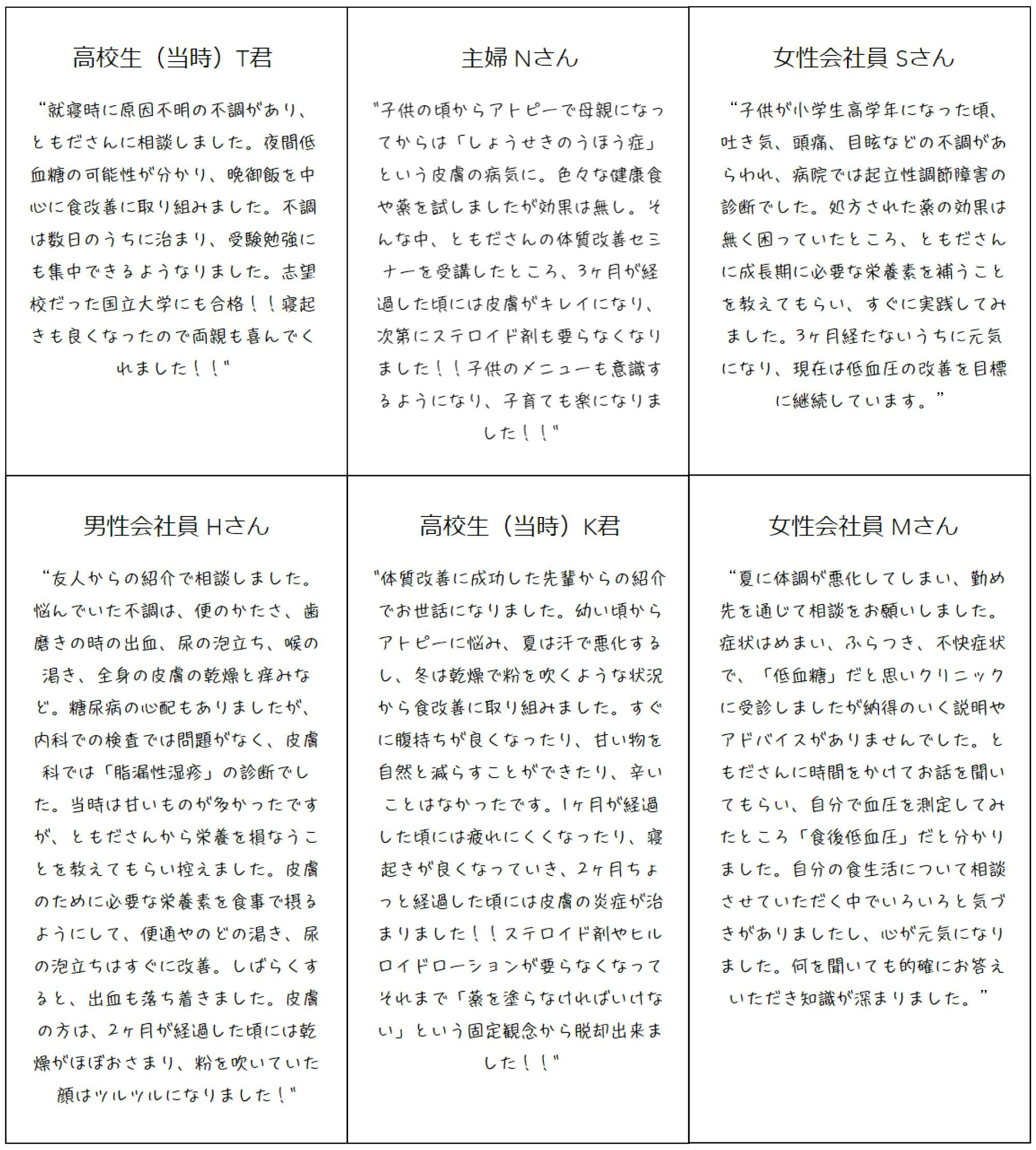 栄養療法に関しては、見る見る改善していかれる様子を見守れることがとにかく嬉しくて!