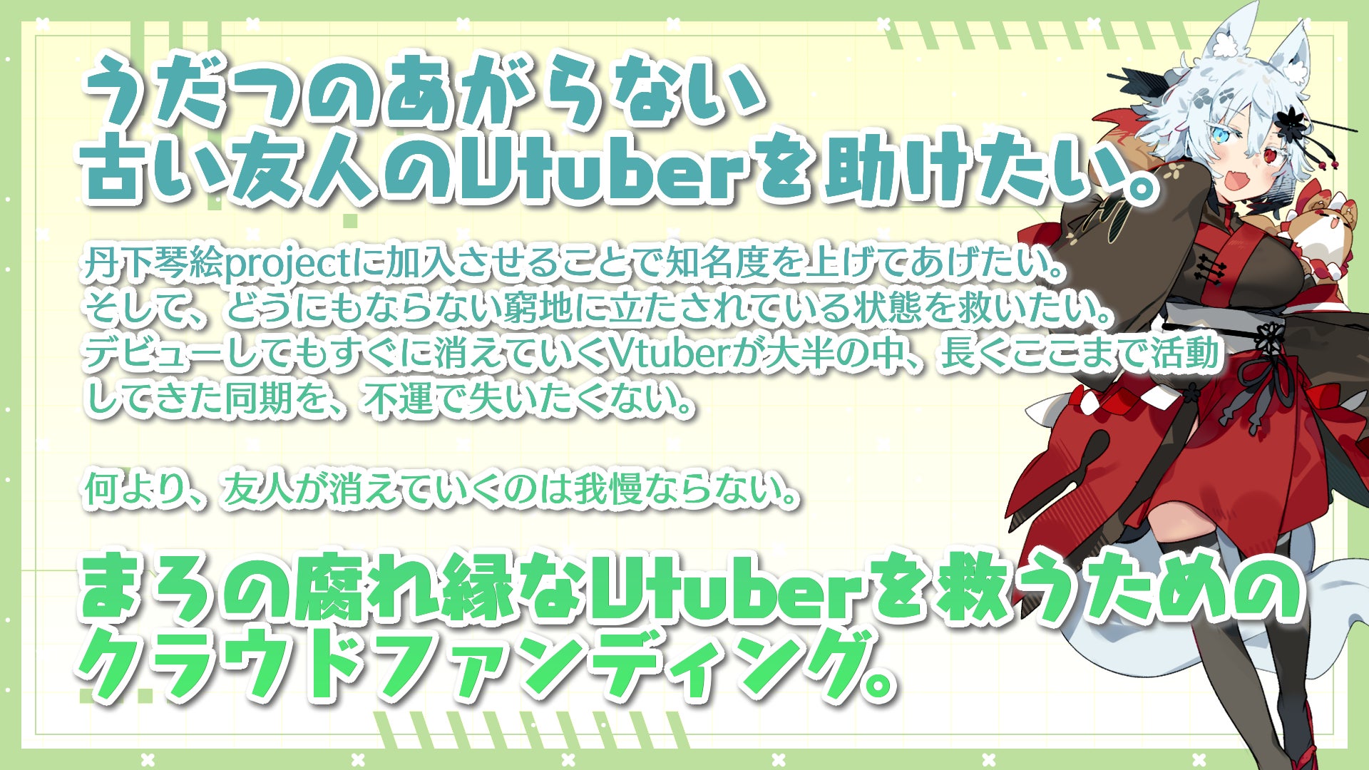 今回の主目的は丹下琴絵project、通称「丹プロ」に新しく加入するVtuberが新たなLive2dモデルになるための資金調達をメインとしている。