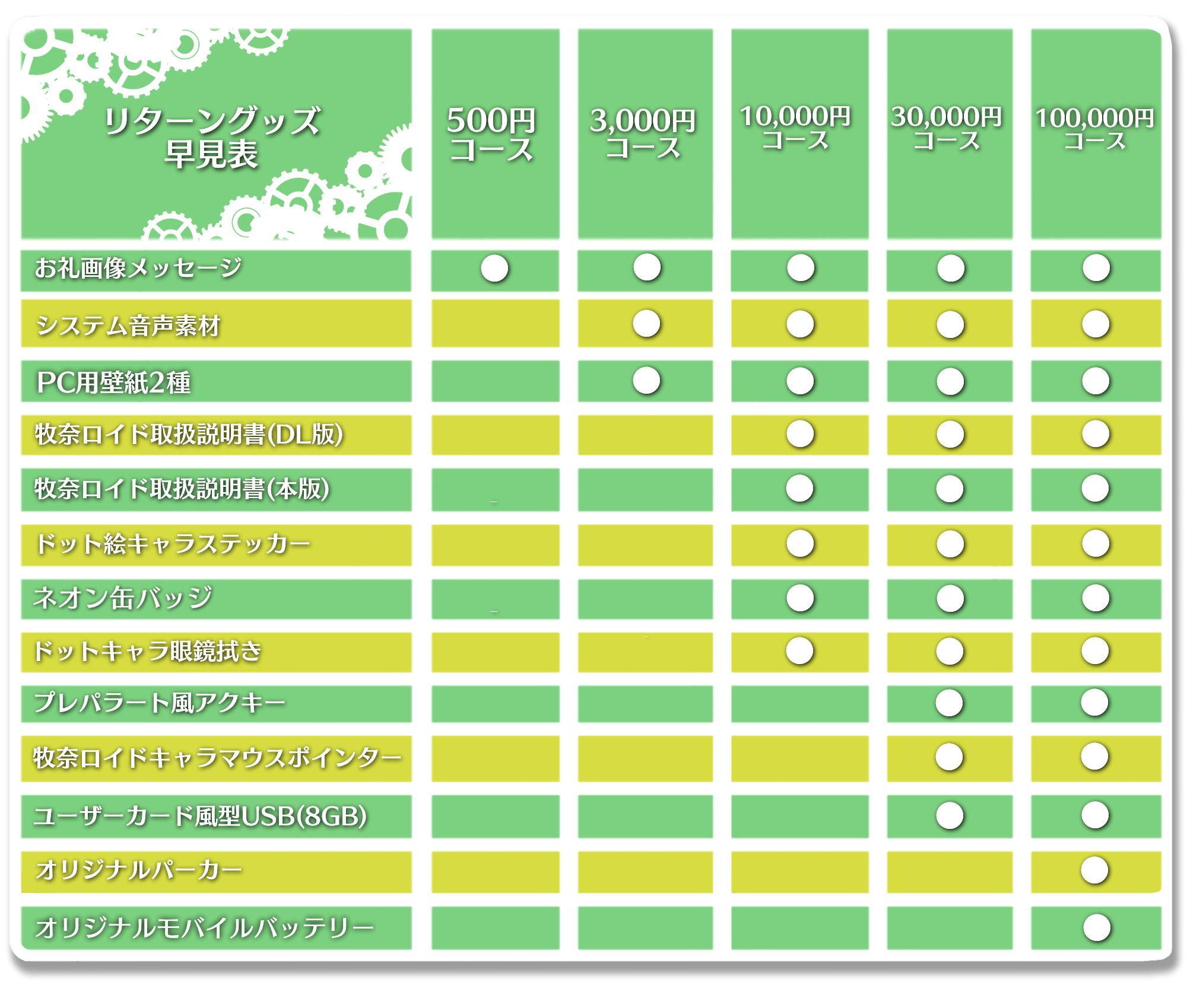 お待たせしました!早速今回のリターンの紹介をさせて頂くぞ!