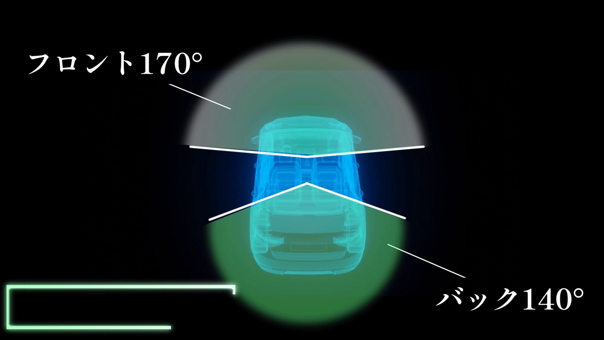 4K画質のフロントカメラは広角視野170°。バックカメラも140°他の追随を許さない超広角視野で貴方の運転をサポート。圧倒的視界の広さを実現!