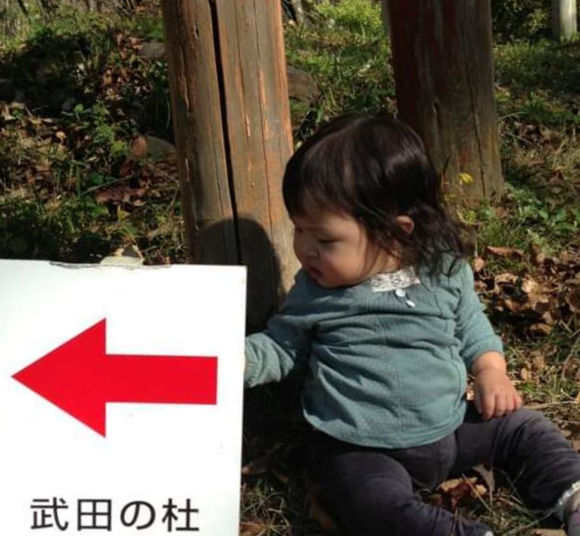 1歳で初めて靴を履いて歩いた1歩目の場所は甲府市の「武田の杜」でした。