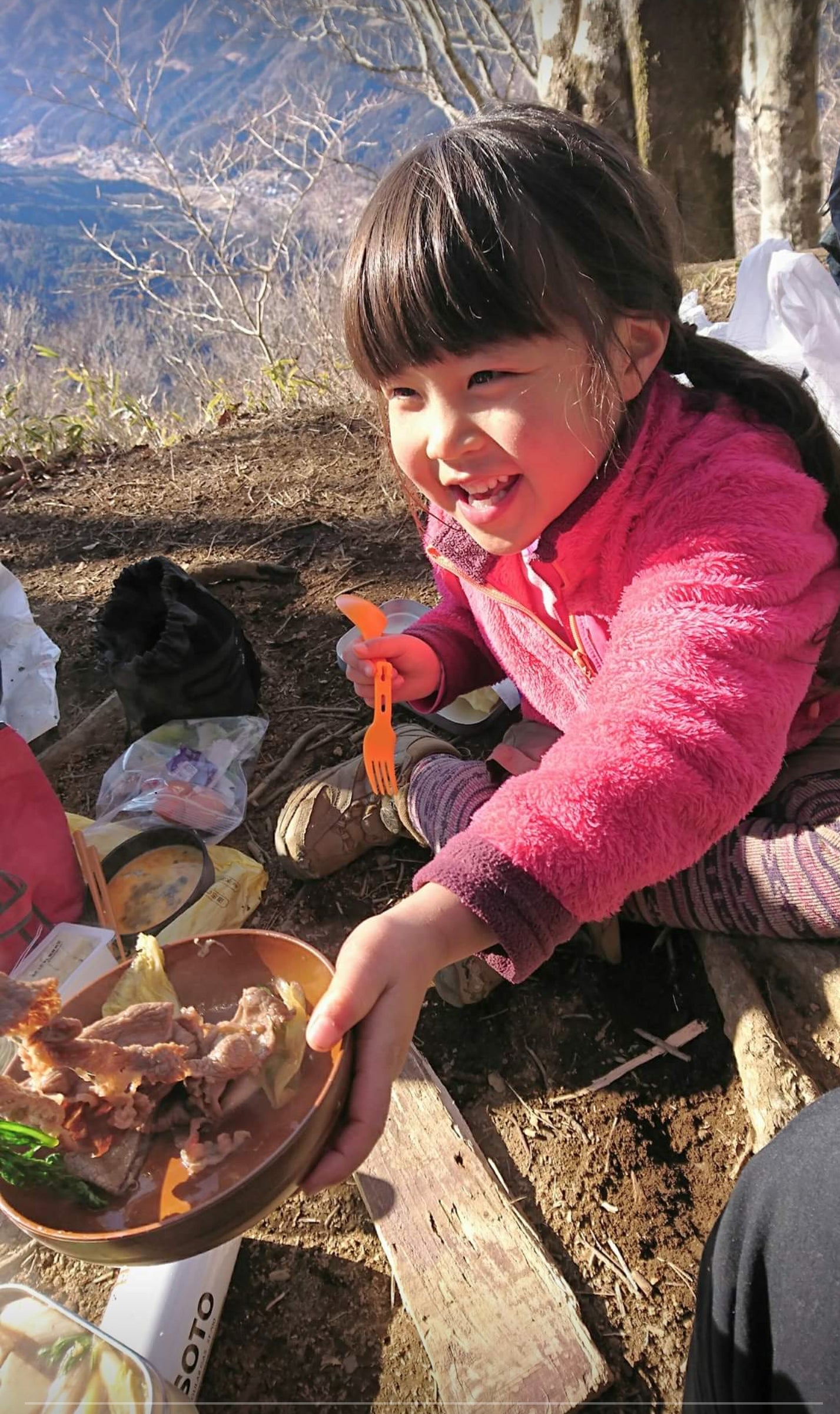 土日や保育園の帰りにも公園に行く感じで、山の中で遊びながら育ちお母さんや山の先輩たちにいろんなことを教えてもらい、一緒に歩いてもらいながら保育園年長クラスの時に「山梨百名山」を全部 登ることが出来ました、うれしかったです。