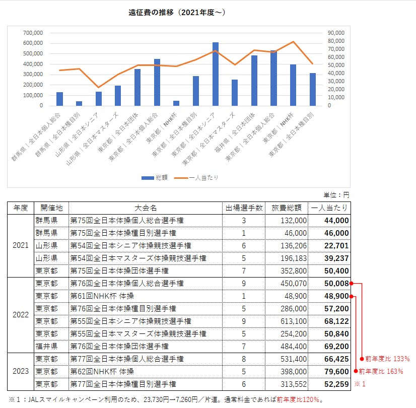 また、全日本と冠の付く大会は、そのほとんど(いや、全部?)が北海道外で開催されます。遠征費については、比較的安価なホテルや航空券手配も安い時間帯での移動など、可能な限り遠征費の圧縮に努めてはいますが、インバウンドの急増など背景にホテル料金高騰など今年に入り昨年度と比較し、遠征費の大幅な増加を予測しています。