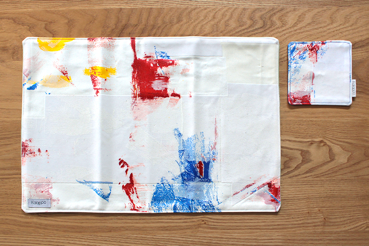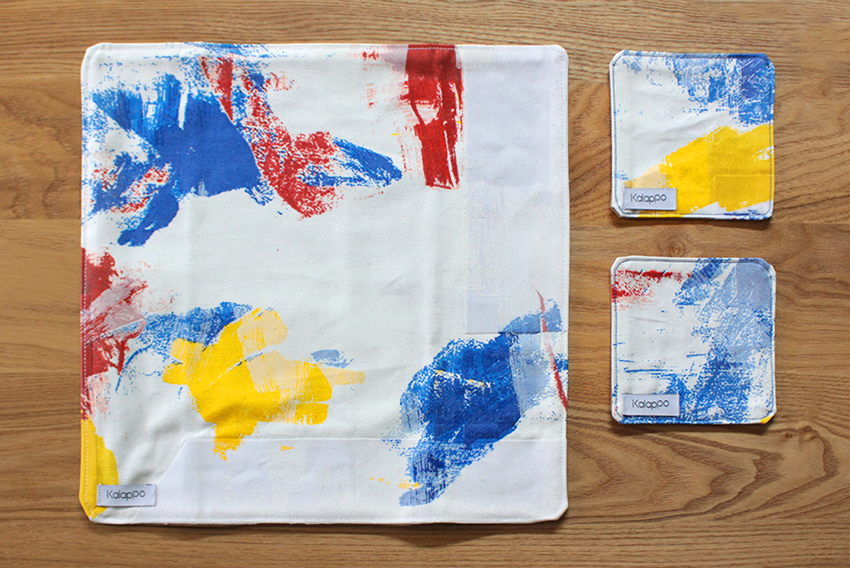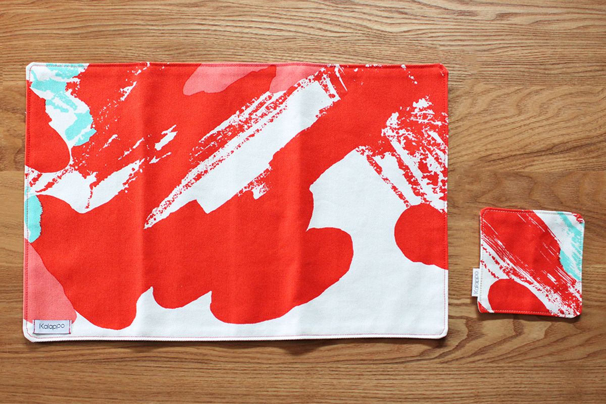 Kalappoオリジナルテキスタイルを用いたプレイスマットとコースターのセットです。