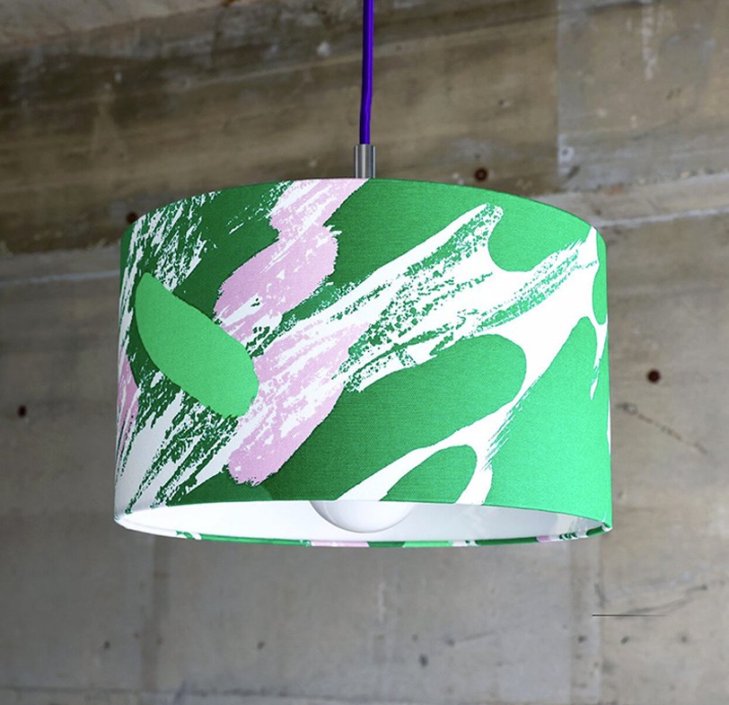 新しい生活様式によって外へ出る機会が減りつつある今、家の中で気持ちの良い気分転換ができないか。トゥーリランプはそんな思いから生まれました。「Tuuli」とは、フィンランド語で「風」を意味します。このテキスタイルは、生まれたての春風をイメージして抽象的に描きました。立春を過ぎたあたりに吹く強い南風、暖かくも少し強引に新しい季節を舞い込むその風を、丸みを帯びたラインとクレヨンのテクスチャを用いた荒々しいラインで表現しました。新鮮な色と形で構成された躍動感のあるデザインは、立ち止まっていた日常に新たな一歩を感じさせ、あなたの背中もそっと押してくれるかもしれません。色はレッド、グリーンの他、ブルーもご用意しています。サイズは直径35cm、高さ20cmとなっており、一つで飾って頂くことはもちろん、2、3個を重ねづけしても素敵です。