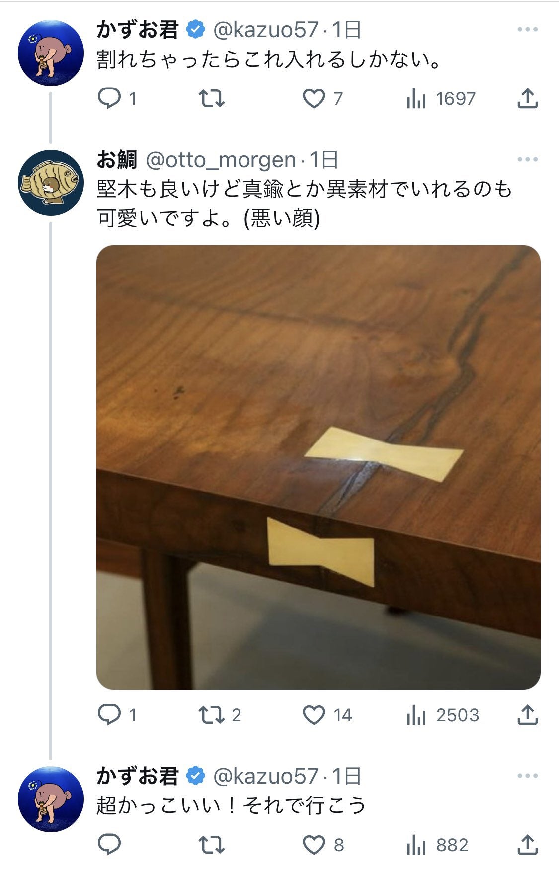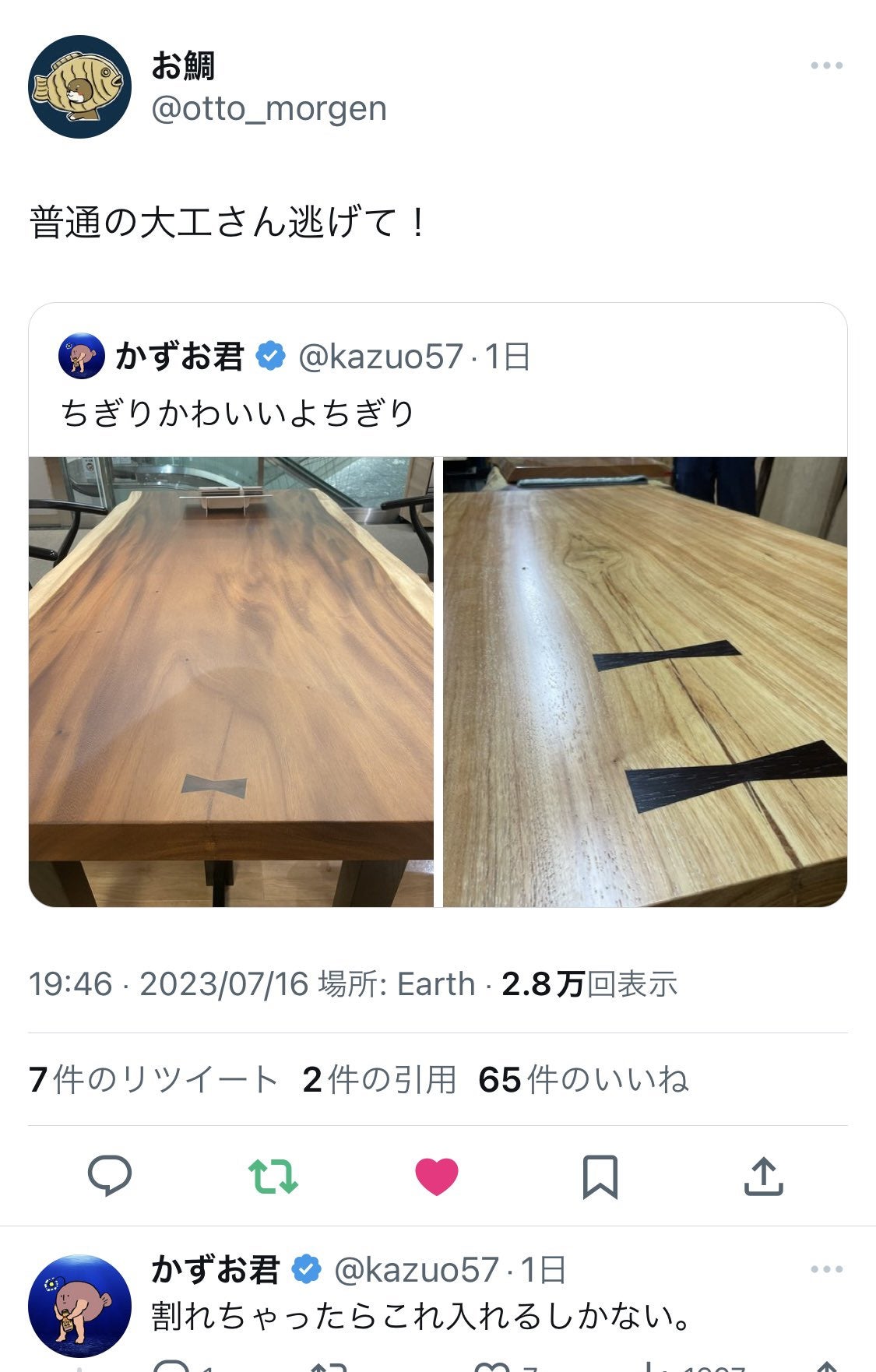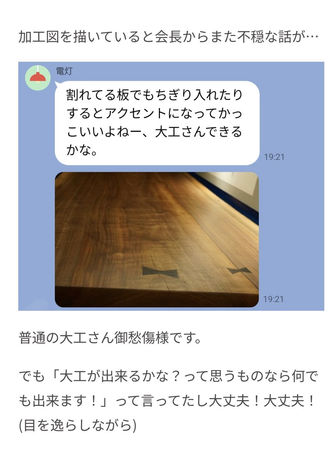 割れたカウンター持ってこられたら銘木屋さんを殴ろう。決めた。絶対殴ろう。