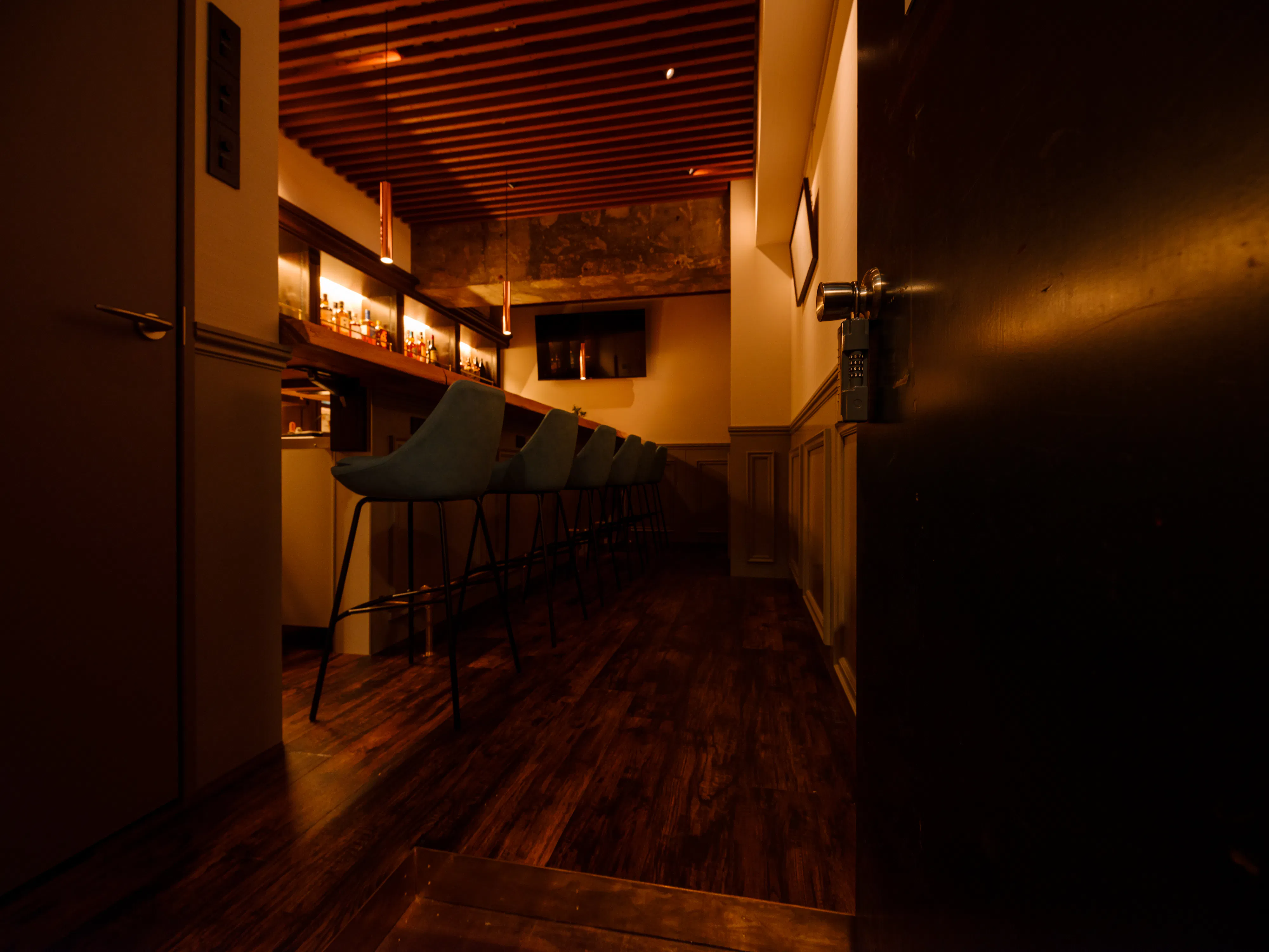 かっこいい内装にスベスベの一枚板のカウンター、高級椅子に座りながらも気軽に楽しく美味しい本物のお酒を嗜んでいただけましたら幸いです。