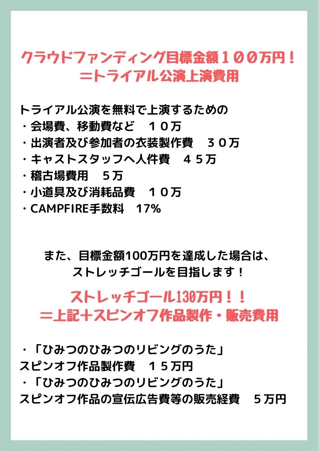 『ひみつのひみつのリビングのうた』の全国各地での上演資金に、大切に使用させていただきます。