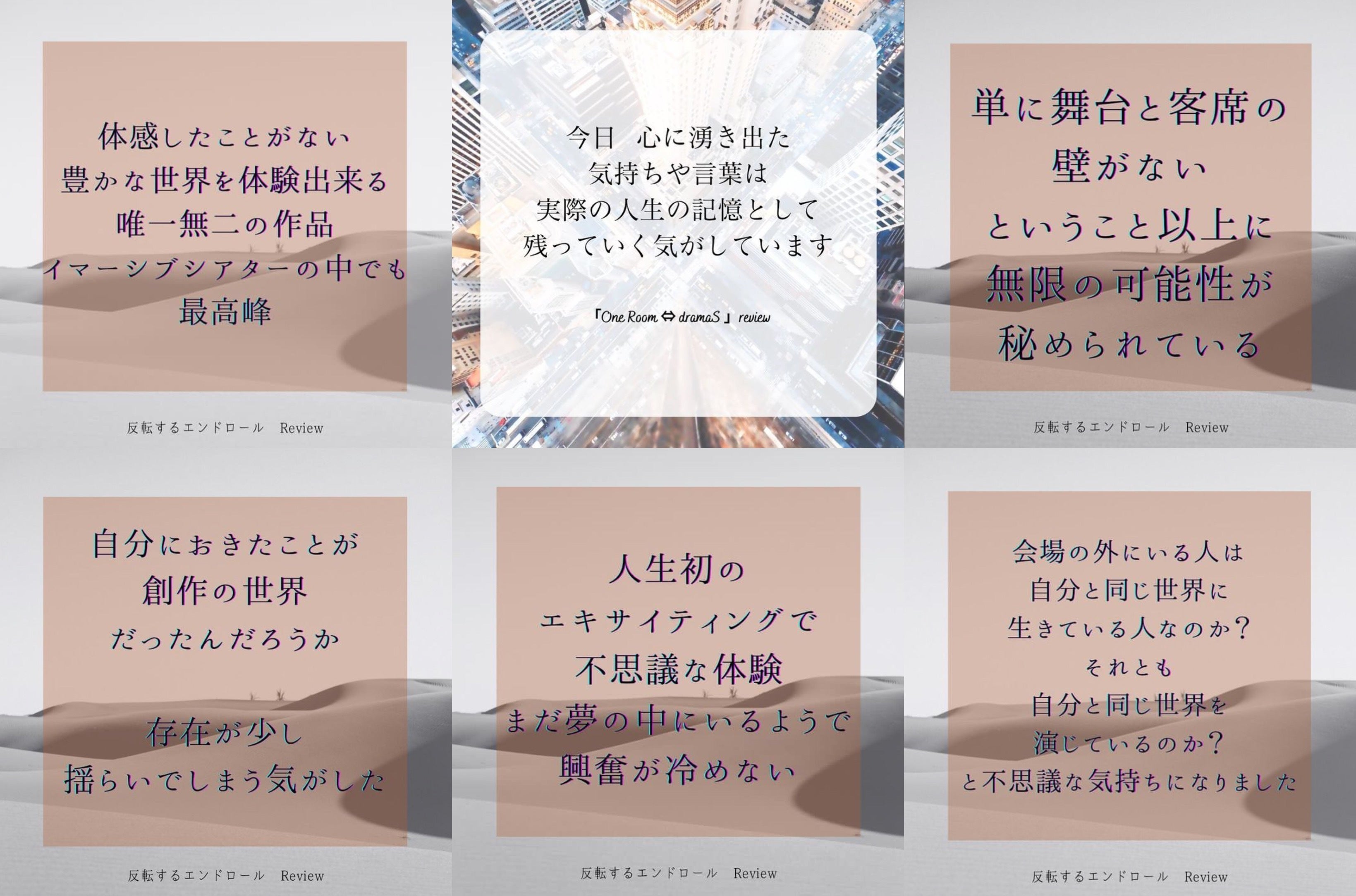 ●これまでに「One Room ⇔ dramaS -落下する記憶-」「反転するエンドロール」の2作品4公演を上演。いずれも公演初日前に完売し、追加公演やアフターイベントも満席となる。