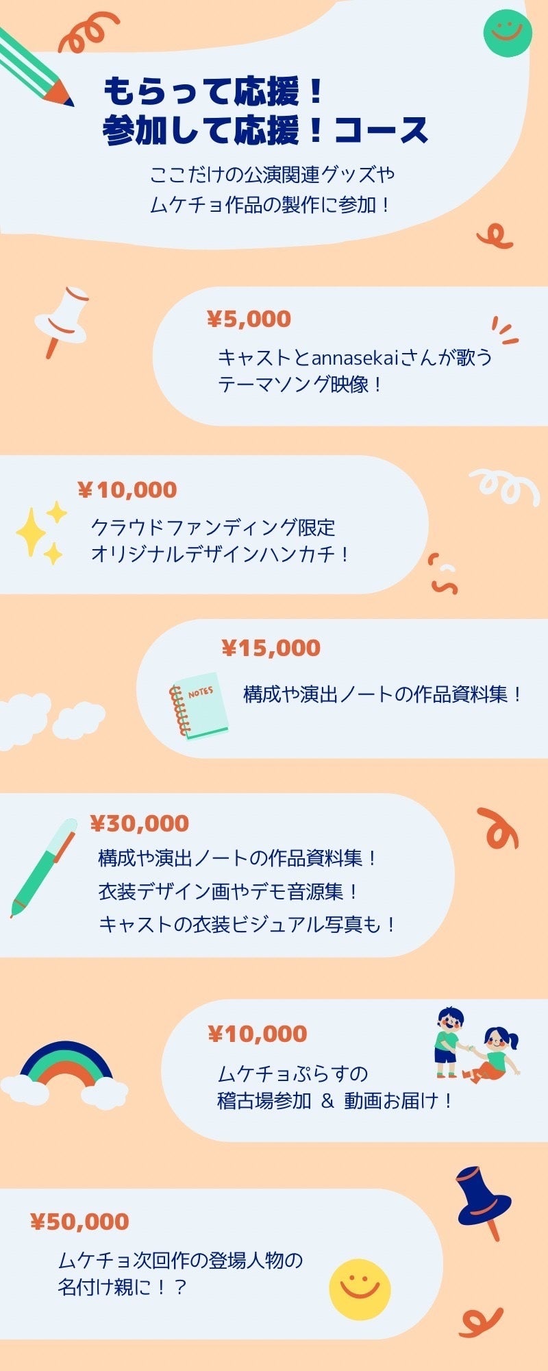 2023/07/17 11:07119名の方からご支援いただき、達成することができました!本当に、本当に、ありがとうございました!終了2日前の達成率が60%で、正直金額だけ見たら苦戦して見えていたと思うのですが、ご支援お寄せいただいていたとてもたくさんの方や、ご支援者様からの応援コメントや、応援してくださる方たちの熱い想いをメッセージやツイートから覗かせてもらっていたおかげで、諦めることなく完走することができました。最終日の朝に70%に到達。残り30分で80%、そして残り10分というところで目標金額達成、その後も伸びる!という本当にドラマチックな展開に、メンバー一同騒然としておりました。どう感謝をお伝えすればいいか…言葉が足りません。本当にありがとうございます。この作品を、全国の色んな場所へ、子どもたちから大人たちまであらゆる世代の方にお届けする未来。本番はもちろんリハーサルも含めて、ご参加くださった皆様が、この作品の《体験価値》を実感し、応援してくださったこと、私たちが今まで製作してきた作品の参加者様が、その体験からこのプロジェクトにご賛同くださったこと、まだ私たちの作品を知らない方までが、そんな皆様の応援から、子どもたちの生き生きとした様子から、このプロジェクトを応援してくださったこと、すべてのご縁に、心から感謝いたします。私たちが確信する未来を、こうしてこんなにもたくさんの方に、こんなにも熱い想いで応援していただけたことが、嬉しくてなりません。頂戴いたしました熱い想いを胸に、今後この作品を全国のいろいろな場所に広げていけるよう、お寄せいただきましたご支援をしっかりと活用させていただきます。またどこかで上演が決まった際には、ぜひ遊びにいらしてくださいませ。TwitterやInstagram、公式Webなど、ムケイチョウコクの今後の活動をチェックしていただけましたら嬉しいです。今作品の他、今年の秋冬には都内古民家カフェを一棟貸し切っての新作イマーシブシアターも予定しています。通称は《背徳》。今作品とは打って変わったオトナ向けの耽美な作品となる予定です。続々新情報が公開されてまいりますので、こちらもご期待ください♪また、創作過程をシェアするムケイチョウコクのLINEオープンチャット「connect」では、公式発表前の先行情報公開や、メンバー様限定のイベント情報なども共有しています。ぜひご参加ください。このプロジェクトへのたくさんの応援、熱いご支援を、本当にありがとうございました。ムケイチョウコクと #リビングのうた を、どうぞこれからも温かく見守ってくださいませ。 もっと見る